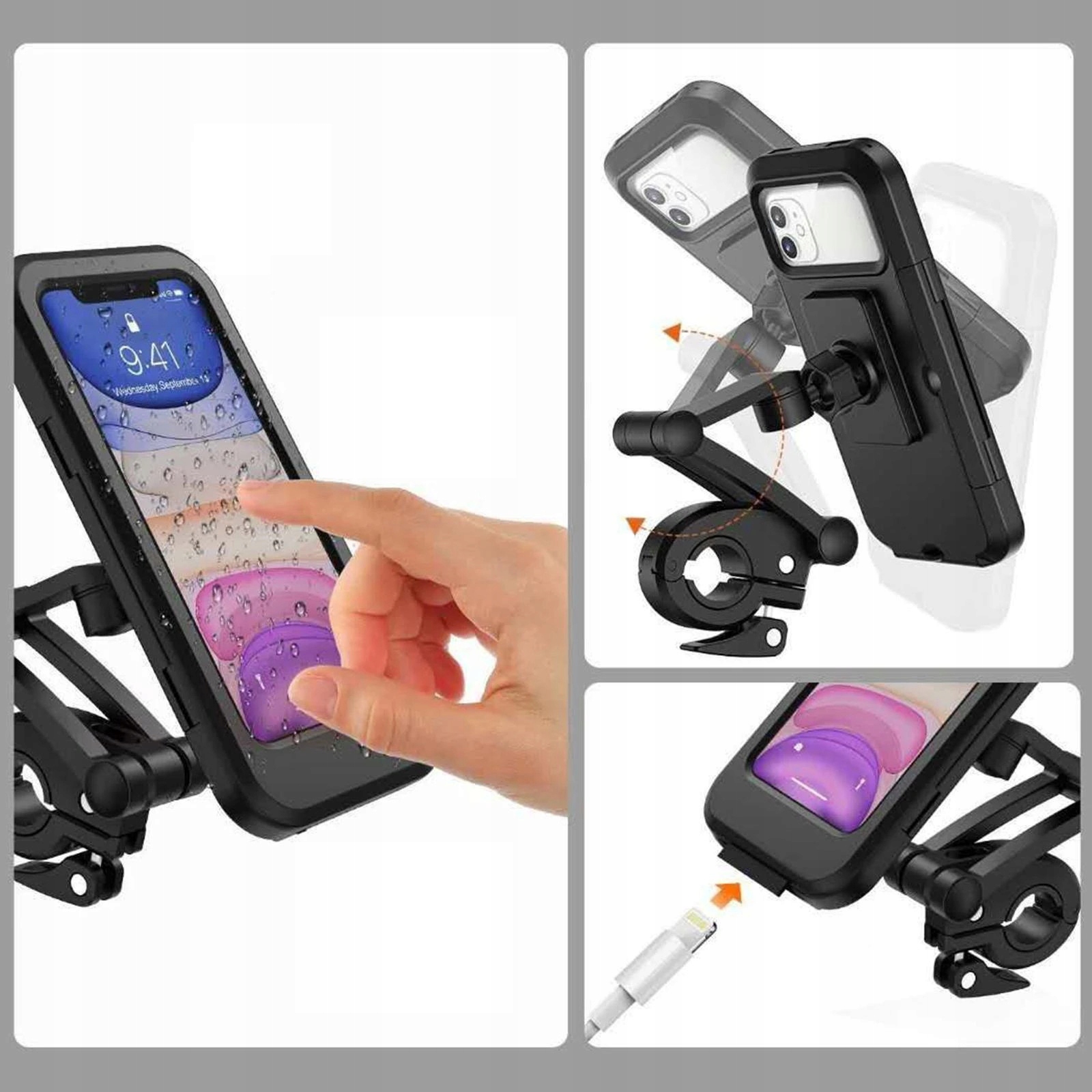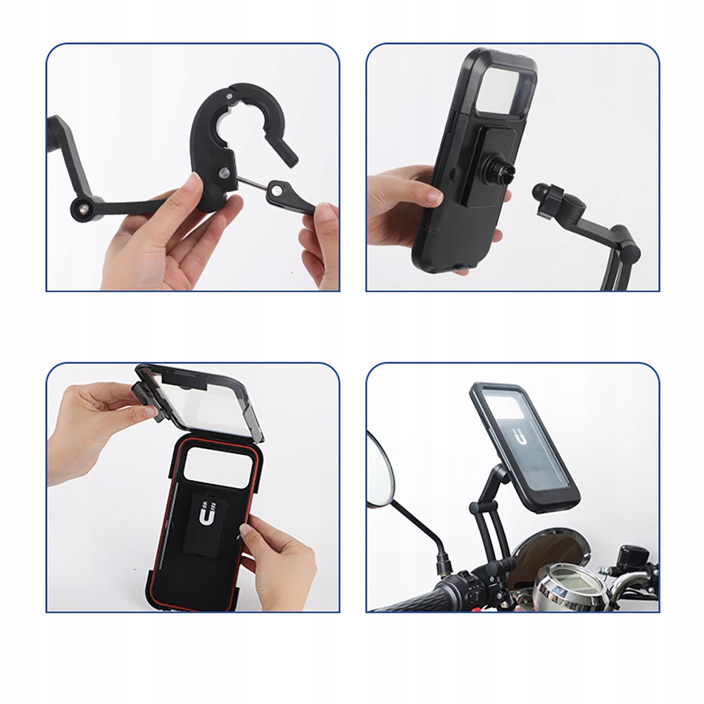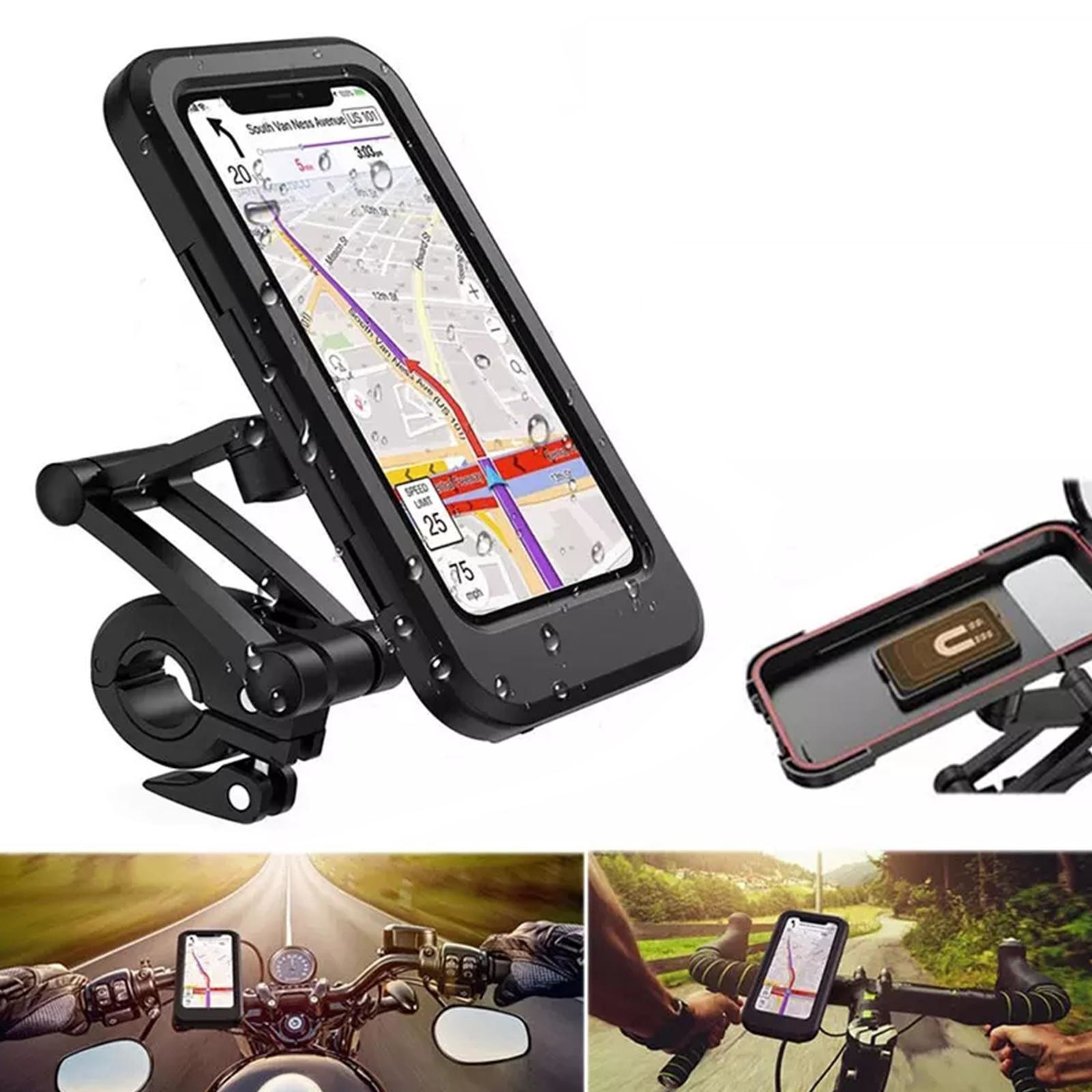 Водонепроницаемый держатель для телефона имеет закрытую конструкцию, что делает его более безопасным, чем большинство велосипедных держателей для телефонов, представленных на рынке. Обеспечивает водонепроницаемость IPX6, чтобы полностью защитить ваш телефон от дождя, снега, грязи и брызг. Уникальная система регулировки винтового крепления и ударопрочный корпус защитят ваш телефон от падений.