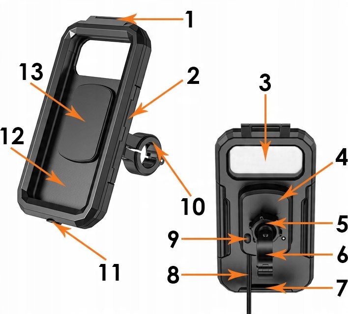 Предлагаемые нами держатели водонепроницаемы, имеют внутреннюю мембрану и отлично защищают телефон от дождя, брызг и пыли, однако не следует считать их полностью водонепроницаемыми.