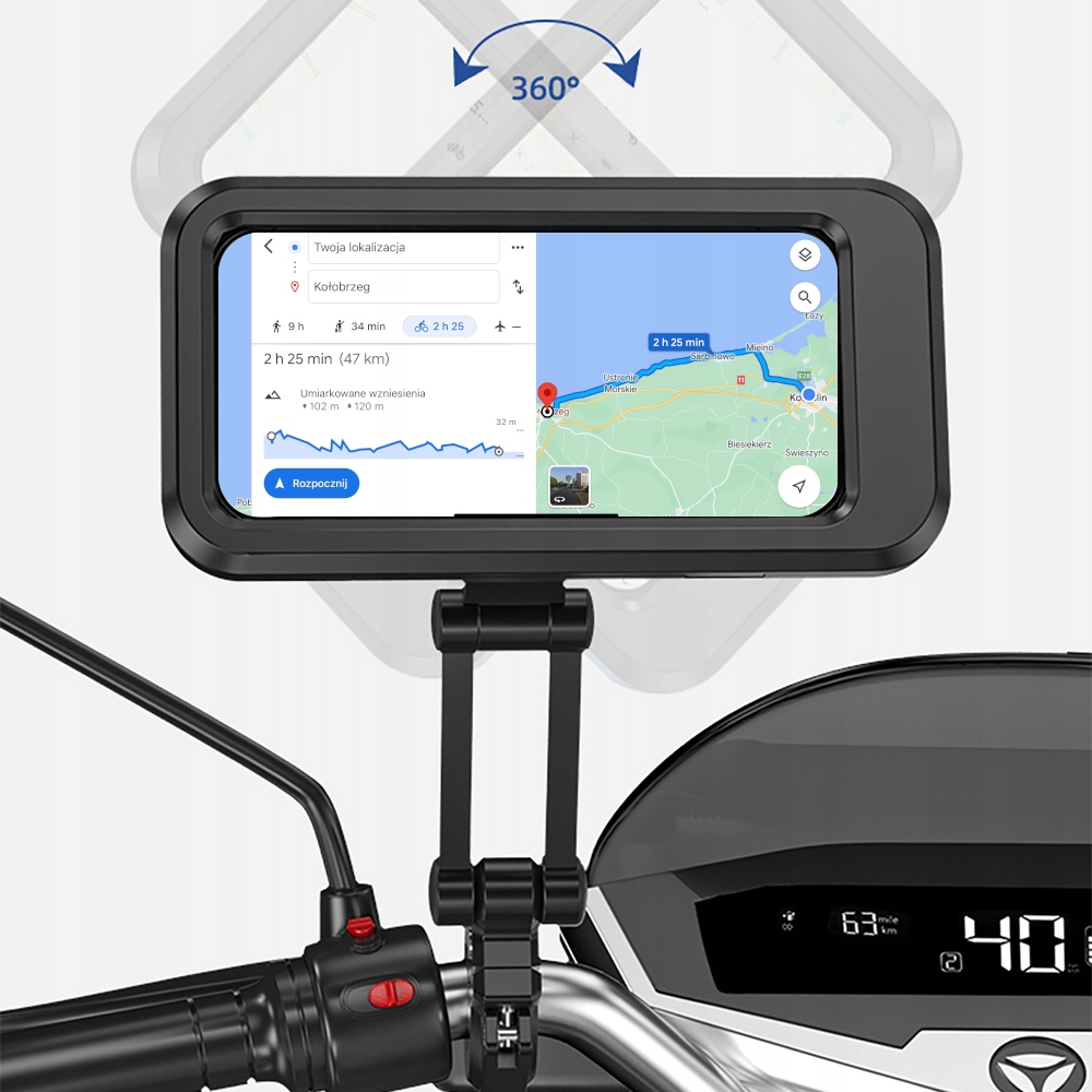 Держатель для велосипеда оснащен интеллектуальным решением — кабельным вводом. Это позволяет заряжать телефон во время вождения. Это чрезвычайно удобно, особенно на длинных маршрутах, когда вам нужно держать устройство заряженным для навигации или общения с другими людьми. Неважно, простая поездка или долгое путешествие. Ваш телефон всегда будет готов к использованию!