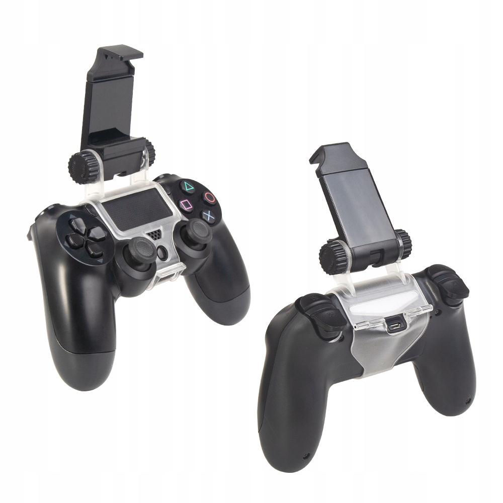 Высококачественный держатель для телефона и панель DualShock 4 консоли PlayStation 4. Позволяет играть в игры на телефоне Android с помощью панели. Совместим с любым телефоном до 6 дюймов (ширина телефона 88 мм). Зажим имеет большой угол наклона – до 180 градусов. Зажим также можно использовать как подставку для телефона.