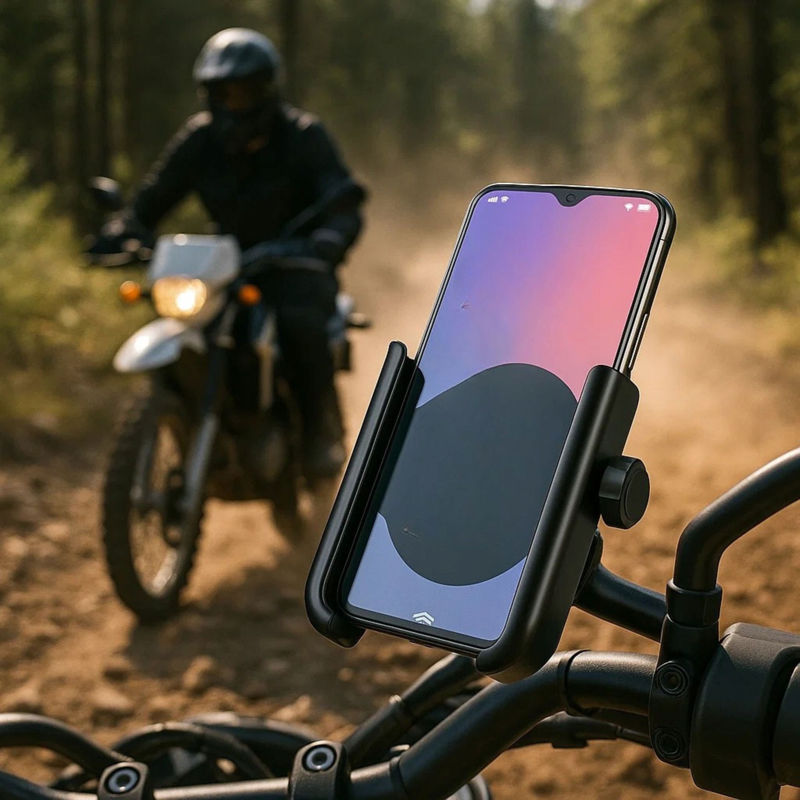 Да Держатель имеет систему винтового замка и силиконовые накладки, которые устраняют вибрацию и защищают телефон даже на труднопроходимой местности