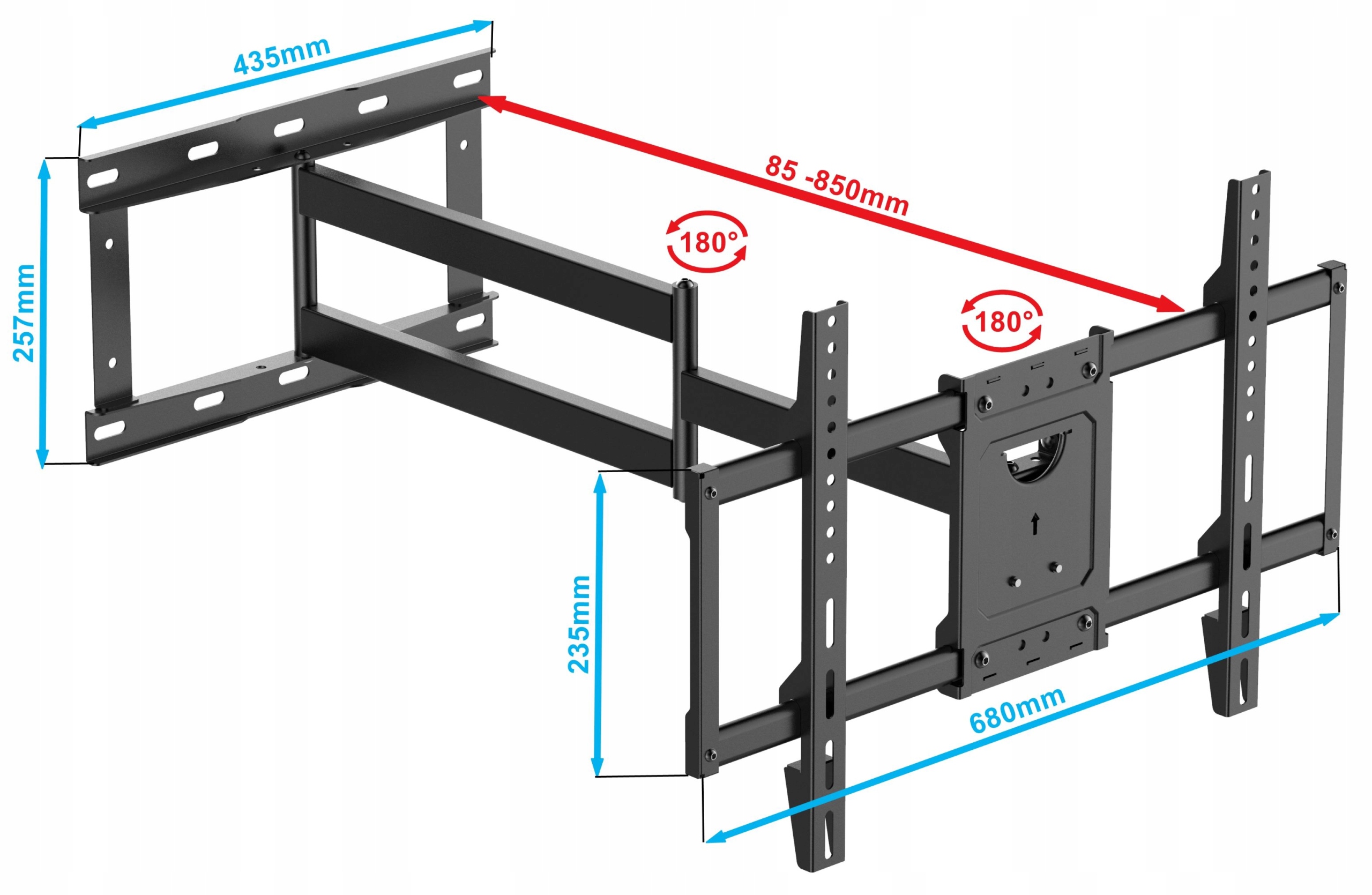 - ➡️Очень длинный кронштейн 85 см - позволяет поворачивать телевизор под любым углом, например, перпендикулярно стене.