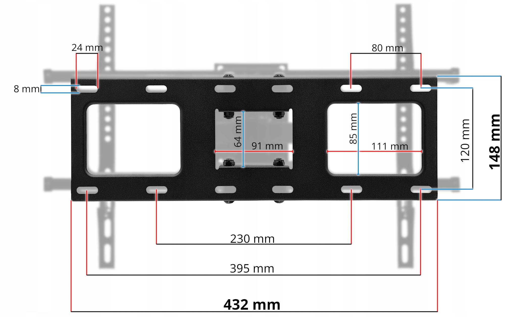 ℹ️ Настенная пластина с отверстиями, позволяющими закрепить держатель таким образом, чтобы электрическую розетку или антенную розетку можно было разместить в стене непосредственно за телевизором.