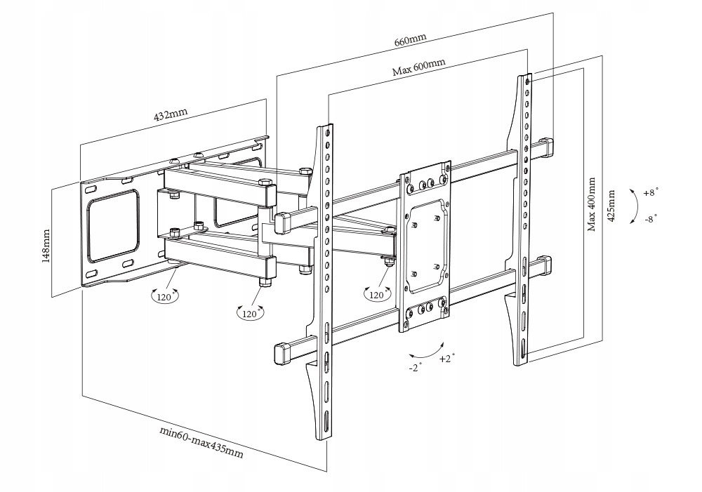 - Регулировка по вертикали: +8° / -8°