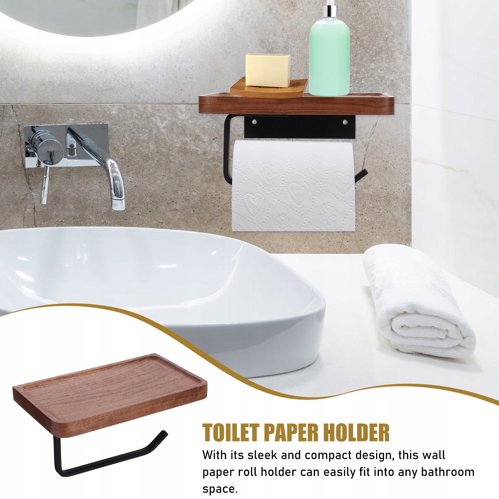 ✅Натуральные и прочные материалы: держатель для туалетной бумаги изготовлен из орехового дерева и металла.
