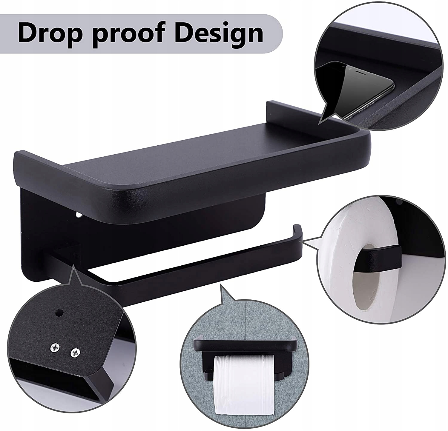[Дизайн против падения] Держатель для туалетной бумаги оснащен защитой от падения со всех сторон. Такие вещи, как мобильный телефон, бутылочки, влажные салфетки, растения в горшках, поставленные на полку, нелегко упасть