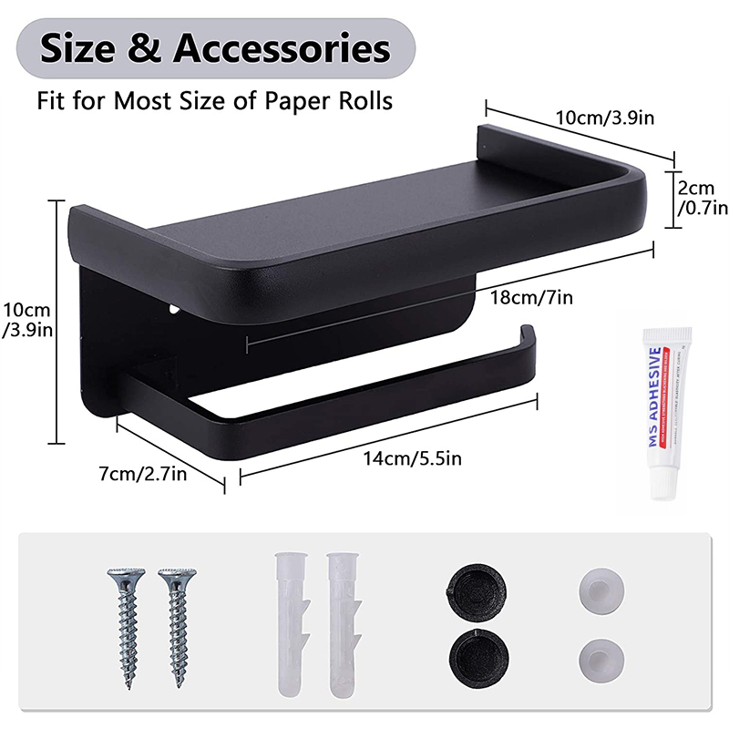 [Один держатель для двойного использования] Держатель для туалетной бумаги совмещен с держателем для туалетной бумаги и полкой для хранения, в нем можно не только хранить рулоны туалетной бумаги, но и размещать мелкие вещи, такие как ключи от мобильного телефона, часы, очки, бутылки. и т. д.