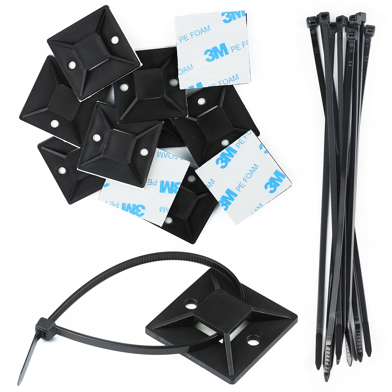 Комплект состоит из десяти кабельных стяжек и десяти монтажных оснований, оснащенных >Вспененная клейкая лента 3М. Он позволяет организовать провода, кабели и многое другое.