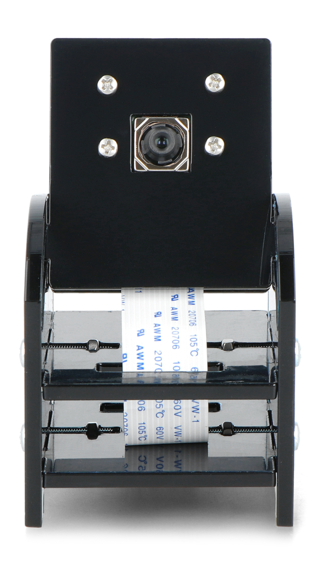 Черный держатель предназначен для официальной камеры Raspberry Pi V3 (также работает с версией V2). Он позволяет регулировать угол наклона камеры и, следовательно, угол записываемого изображения. Ручка изготовлена из черного пластика, покрыта защитной пленкой, которую можно снять перед установкой. В средних стенках держателя имеются сквозные отверстия, через которые можно протянуть соединительную ленту между камерой и Raspberry Pi. Изделие крепится с помощью винтов, входящих в комплект.