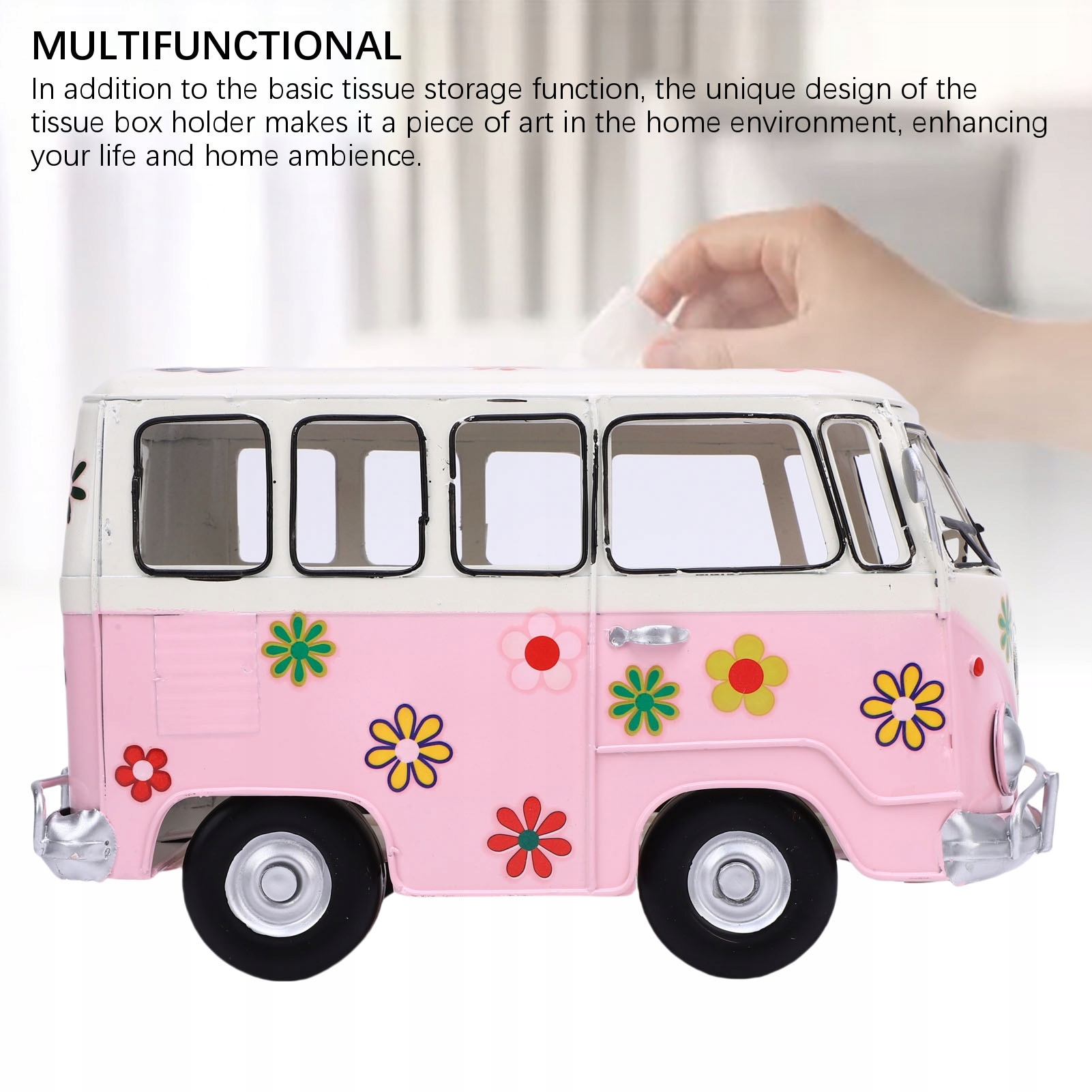 2. УНИКАЛЬНЫЙ ДИЗАЙН В ФОРМЕ АВТОБУСА: крышка коробки для салфеток имеет уникальную форму автобуса с красивыми линиями и цветами. Эта винтажная коробка для салфеток придаст очарование вашему дому.