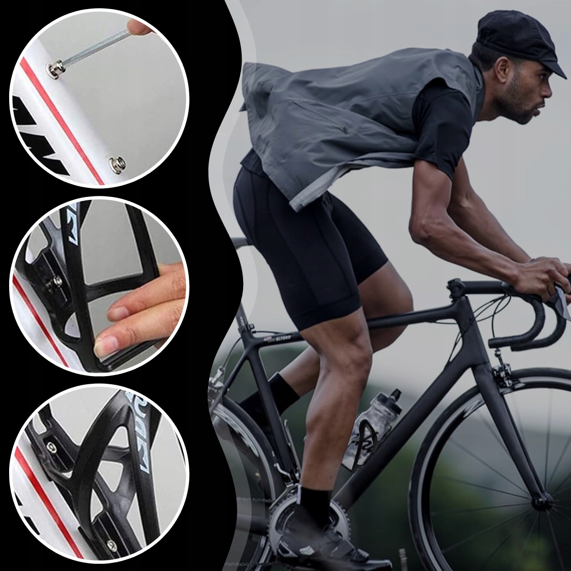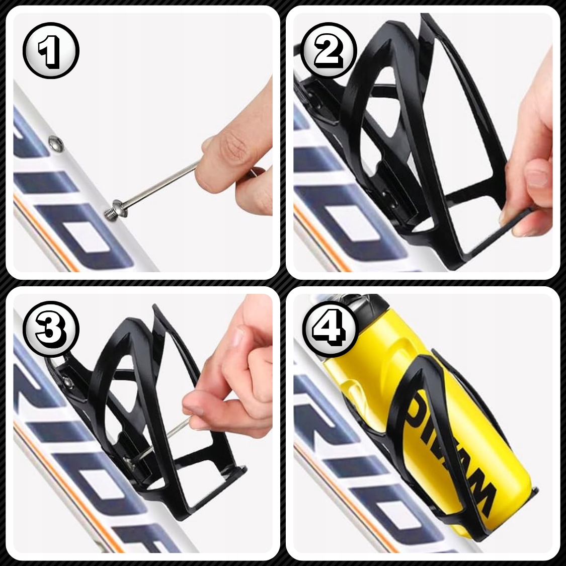 Два монтажных отверстия + два винта (обычно доступные в раме) - все, что вам нужно. Просто используйте ключ Allen, чтобы надеть корзину через несколько десятков секунд и отправиться на дорогу!