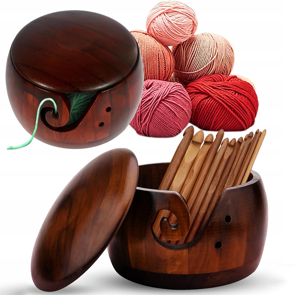 ⭐Переносной: 1 деревянная миска для пряжи с крышкой, 12 крючков разных размеров. Переносная миска для пряжи для удобного вязания крючком в любое время и в любом месте.