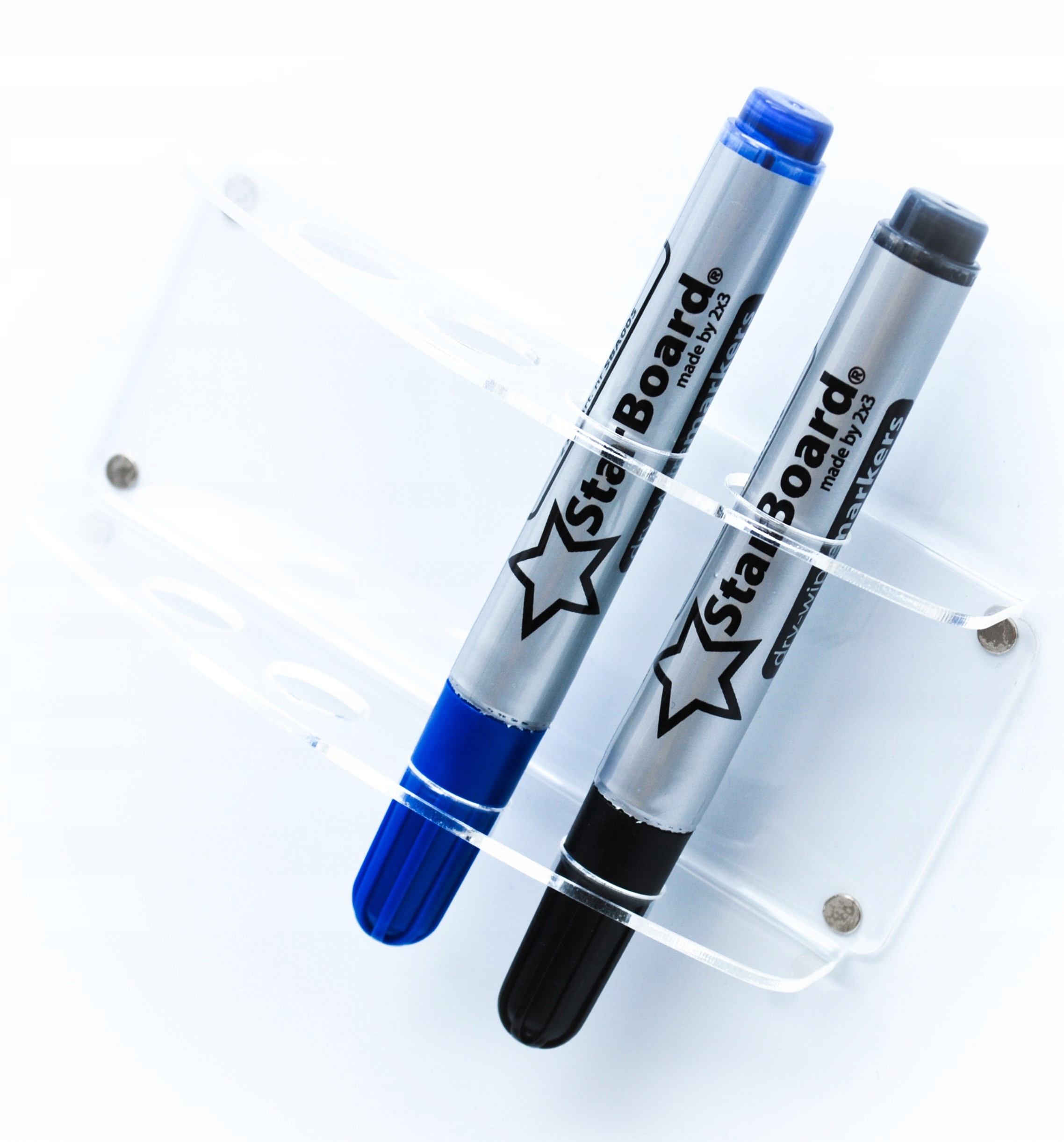 Магнитный держатель позволяет хранить 4 маркера непосредственно на магнитной доске благодаря использованию сильных магнитов. Диаметры отверстий адаптированы к наиболее популярным типам маркеров, что обеспечивает наибольшую универсальность.