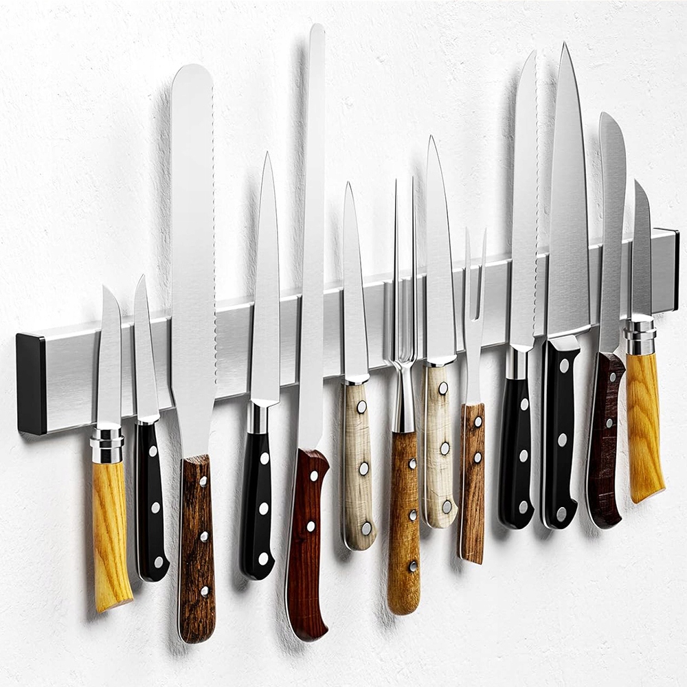 - Этот магнитный держатель для ножей подойдет не только на кухне, но и в офисе, гараже, подвале или мастерской, гарантируя аккуратное и удобное хранение инструментов.