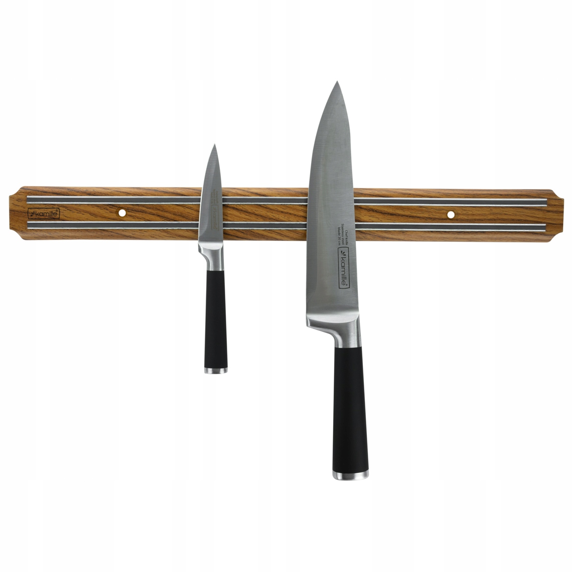 Магнитная полоса Kamille — современное решение для каждой кухни. Благодаря ему мы можем повесить на стену ножи, кухонную утварь или другие металлические предметы, что позволяет легко дотянуться до этих вещей во время работы.