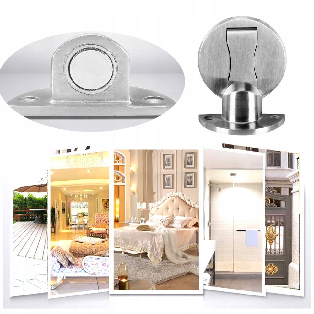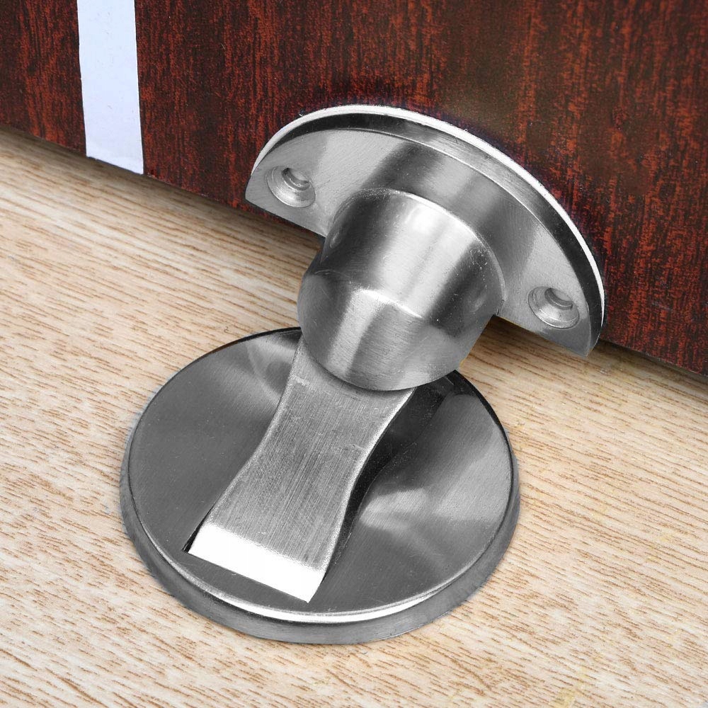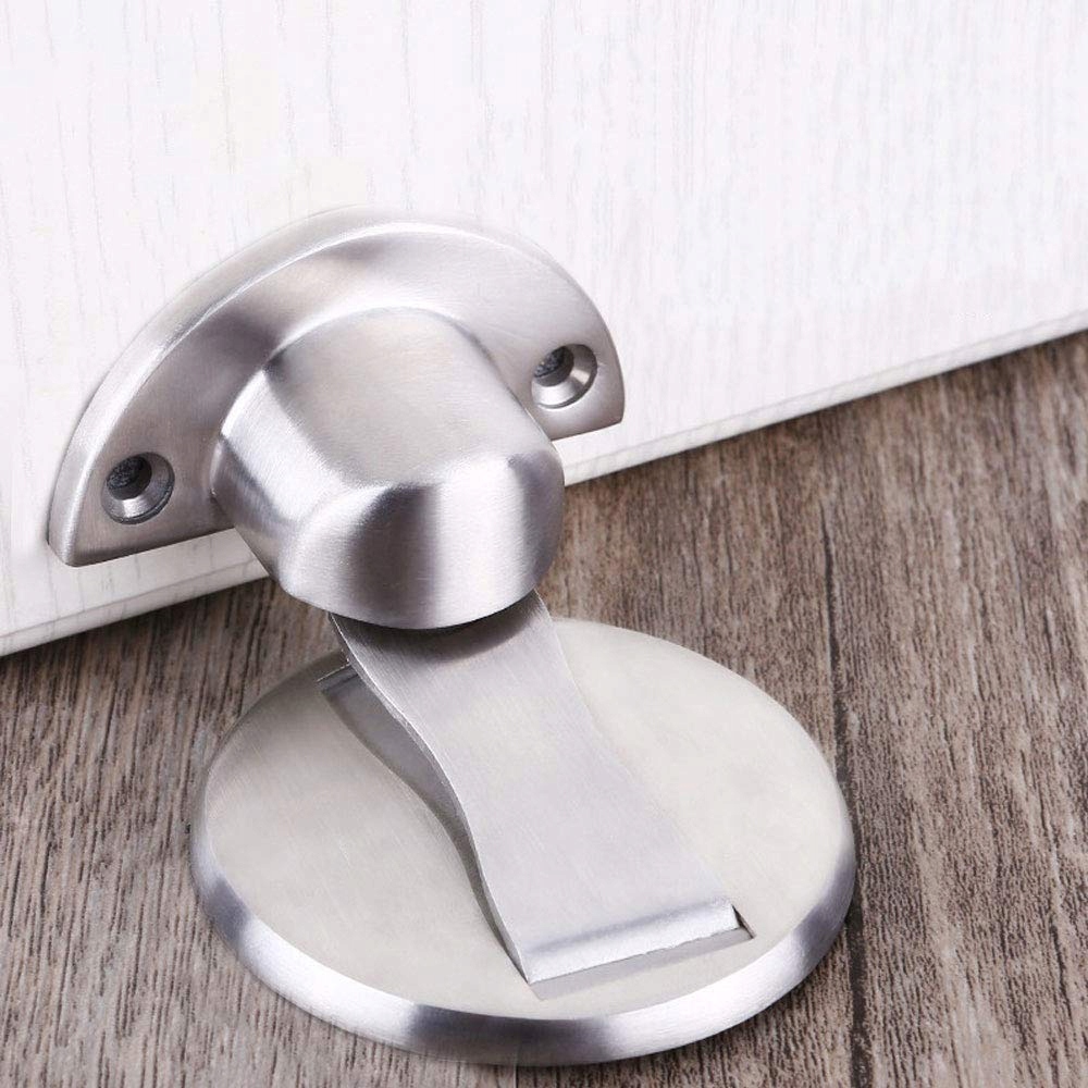 Высококачественная металлическая конструкция из цинкового сплава. Магнитный дверной стопор. Сильный магнит на упоре удерживает дверь открытой. Отделка из матовой нержавеющей стали, устойчивость к сильной коррозии и ржавчине. Высота основания составляет 4,2 мм, оно достаточно тонкое и предотвращает наступание и спотыкание.