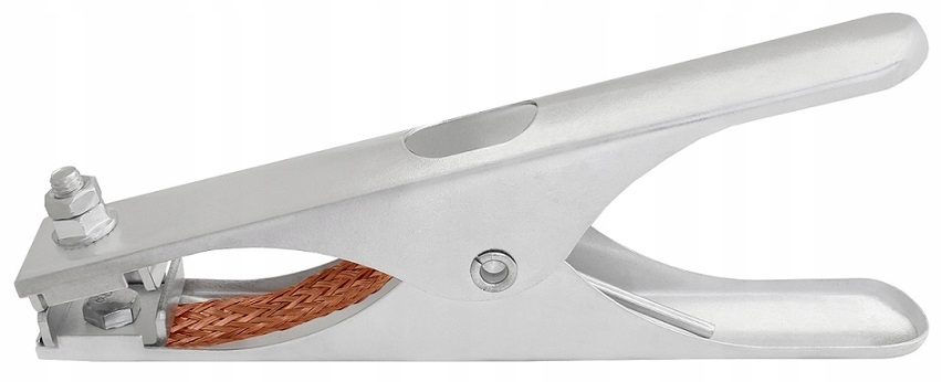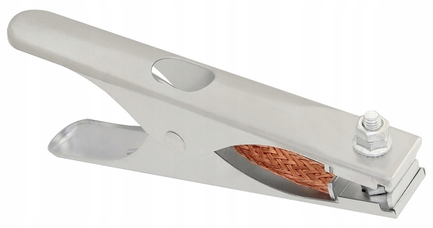 Зажим заземления, используемый при сварке для прикрепления заземляющего кабеля к свариваемому материалу, создавая сварочную цепь. Контакты на щипцах с медной оплеткой и прочной пружиной обеспечивают хорошее и надежное крепление к свариваемому материалу и хорошую проводимость электричества.