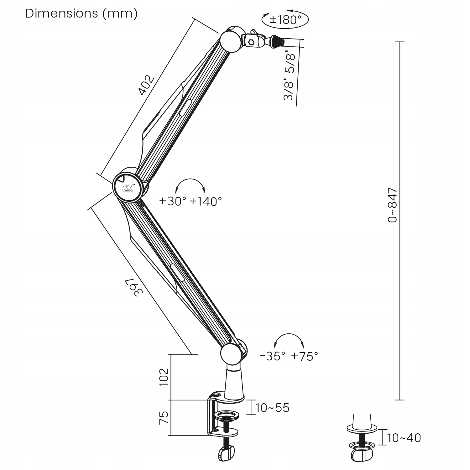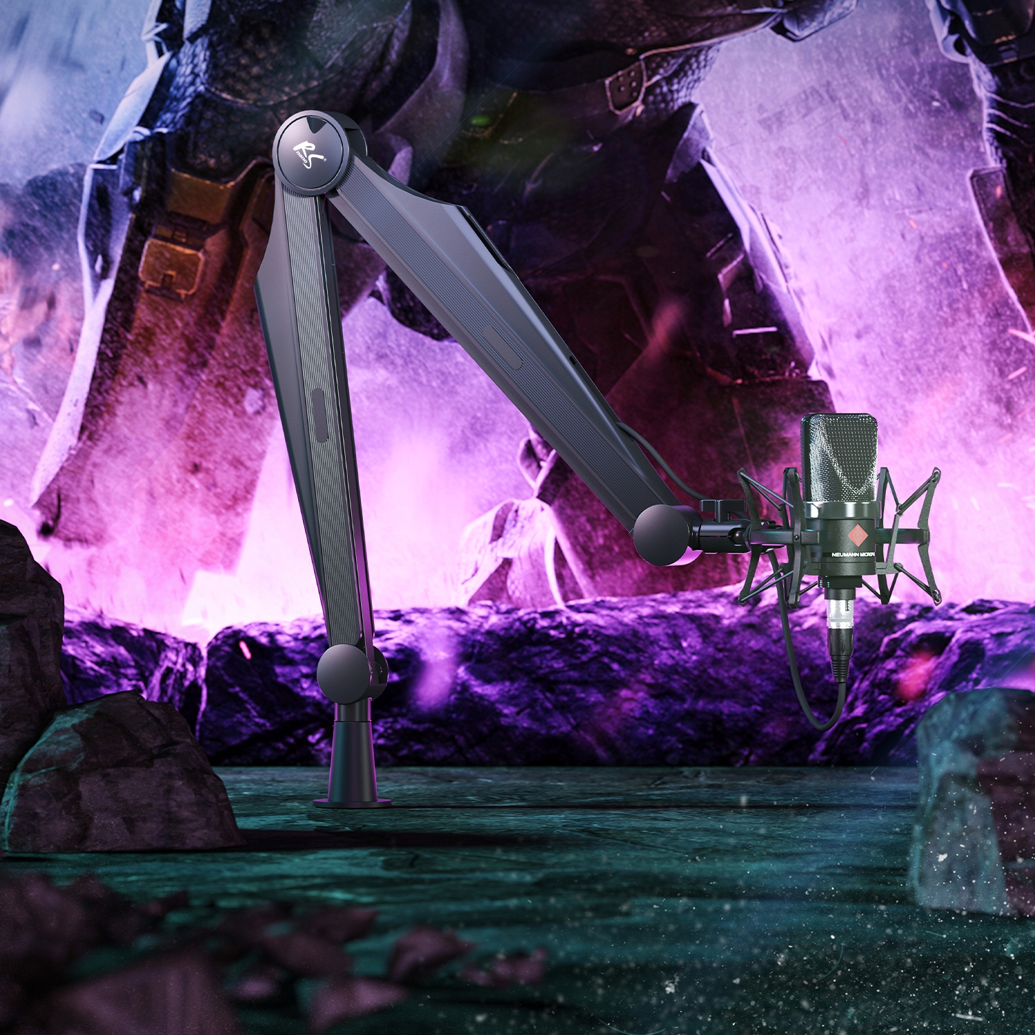 Держатель позволяет прикрепить его как к краю столешницы, так и к отверстию для кабеля. Благодаря универсальной резьбе 3/8" и 5/8" держатель совместим с большинством студийных микрофонов, доступных на рынке. Встроенная система управления кабелями обеспечивает порядок и повышает эстетику.