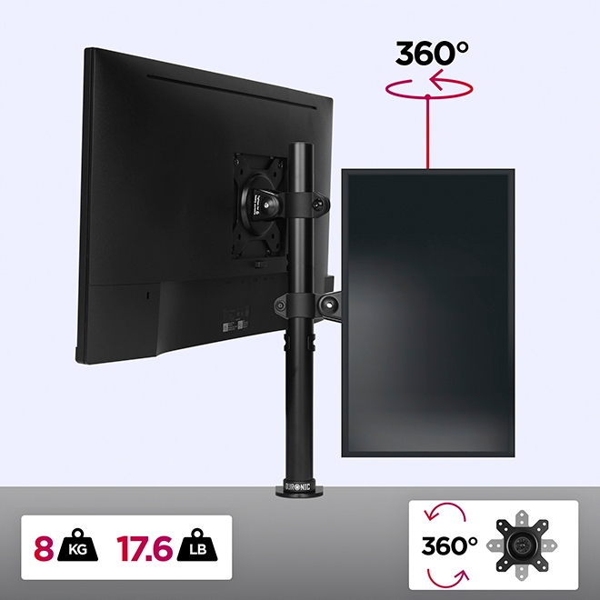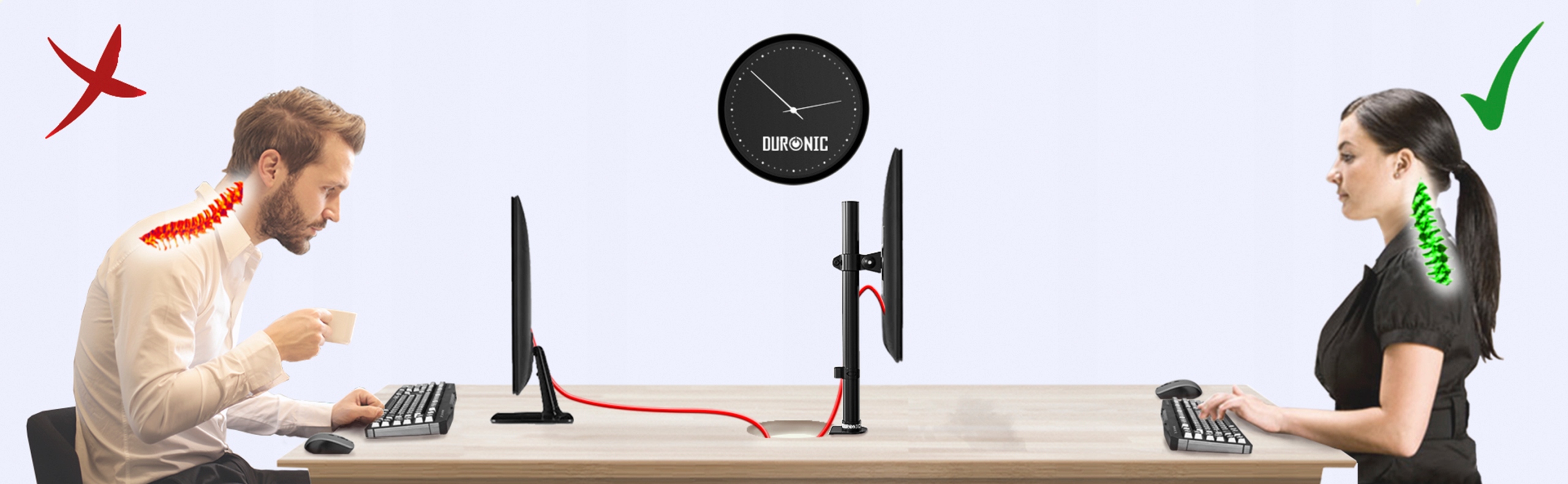 - Duronic DM151x1 — держатель, предназначенный для крепления 1 монитора с помощью зажима и подвижной головки. Это позволяет повысить эргономику работы – больше места на столе и лучший угол обзора (без необходимости разборки). Благодаря ручке вы можете свободно регулировать высоту и угол наклона экрана. Система сборки идеальна для художников-графиков, дизайнеров и геймеров, а также для повседневной офисной работы.