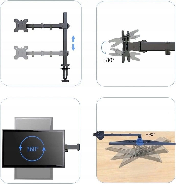 Функция наклона ± 80, поворота ± 90 и поворота на 360, регулируемая высота 15,748 для оптимального угла обзора.
