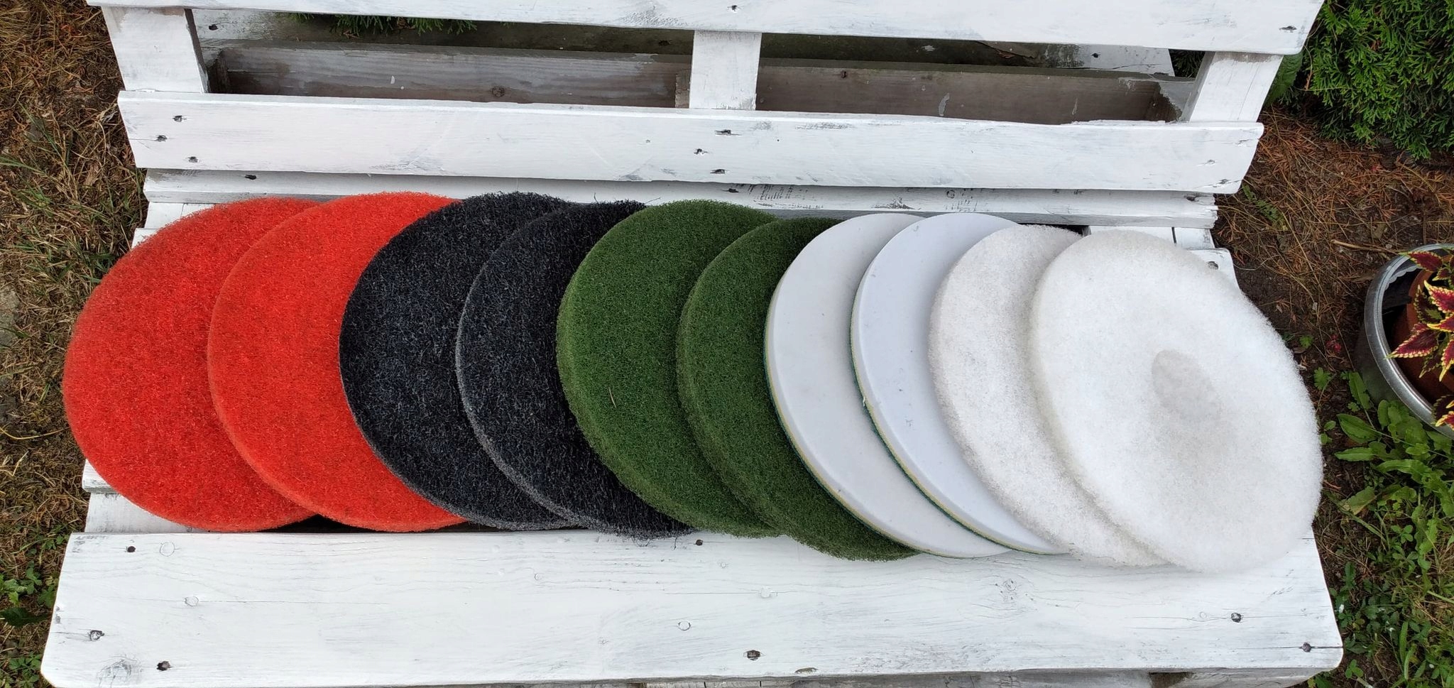 — наиболее часто используемая чистящая салфетка для ежедневной чистки полов, например. керамическая плитка, бетон, терраццо, терраццо. Его также можно использовать при необходимости (сильное загрязнение) на полах из ПВХ. Использование зеленых подушечек повышает эффективность работы и эффективность удаления загрязнений с большинства типов твердых полов. На гладких поверхностях она дает гораздо лучшие результаты, чем обычная кисть. Его также можно использовать для аккуратного удаления верхних слоев полимера с защитного покрытия при ремонте.