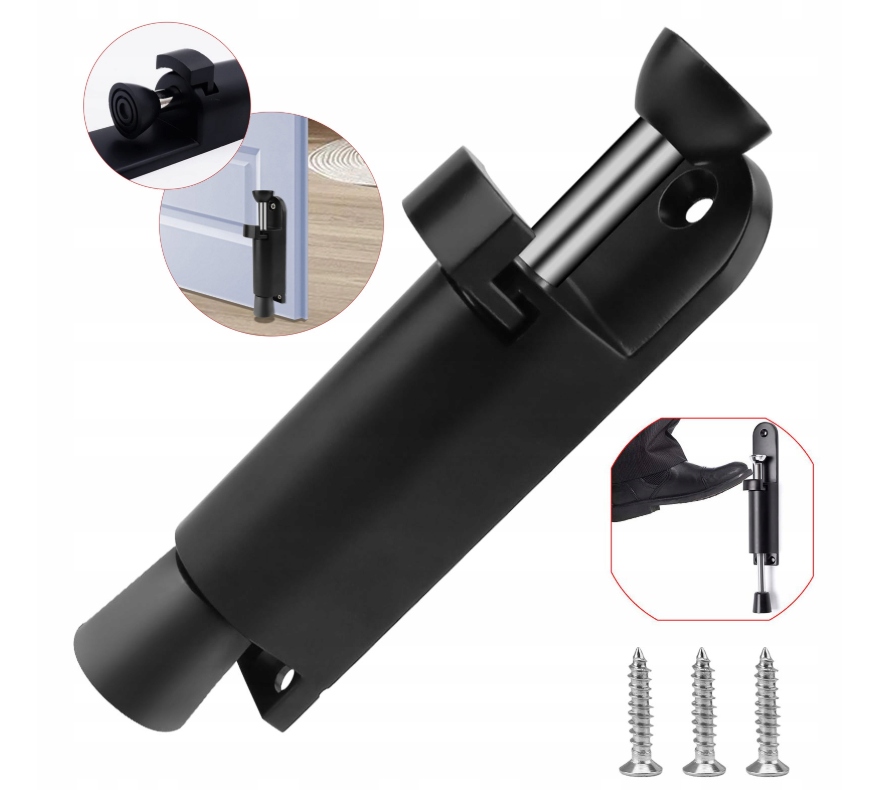 ДЕРЖИВАЕТ ДВЕРЬ НАДЕЖНО ОТКРЫТОЙ Дверной упор с пружиной и мягкой резиной хорошо удерживает дверь открытой и может удерживать дверь в желаемом положении. Усилие пружины обеспечивает безопасное закрытие двери. Дверь не трясется и не шумит на ветру