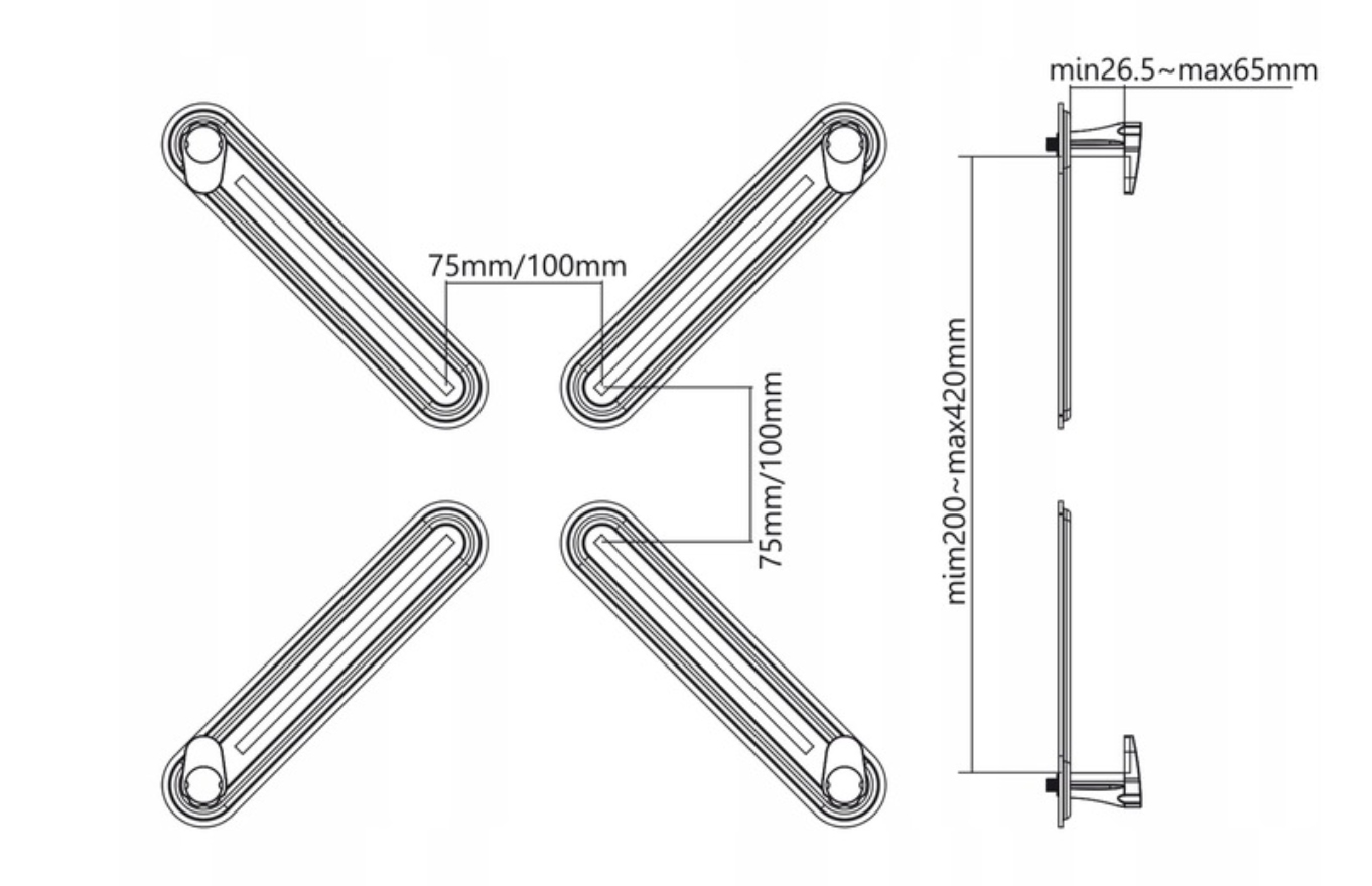 - Подходит для креплений стандартов VESA 75x75 и 100x100