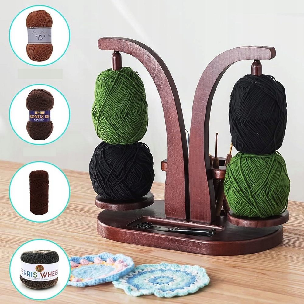 🎨 Двойные шпиндели:Подставка для пряжи имеет два балансира для удержания клубков разного цвета, поэтому вы можете использовать два клубка одновременно, уменьшая частоту смены пряжи. 🌈