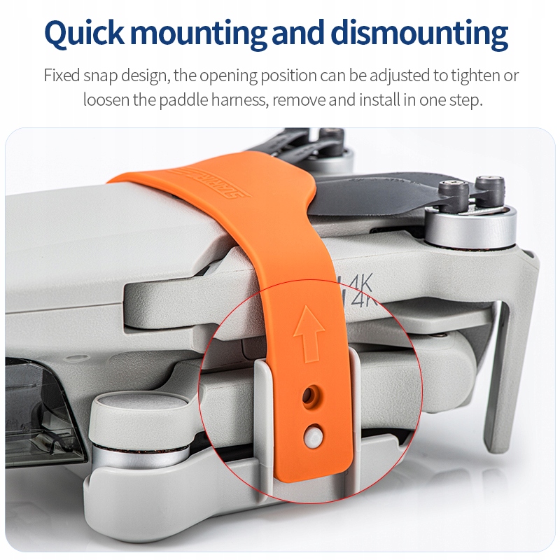 【Прочный】 Ремешок для крепления пропеллера Mini 4K, изготовленный из материала ABS для обеспечения долговечности и дополненный мягкими силиконовыми ремнями, имеет два отверстия, которые можно регулировать и надежно застегивать, не повреждая дрон Mini 4K / Mini 2 SE / Mini 2.