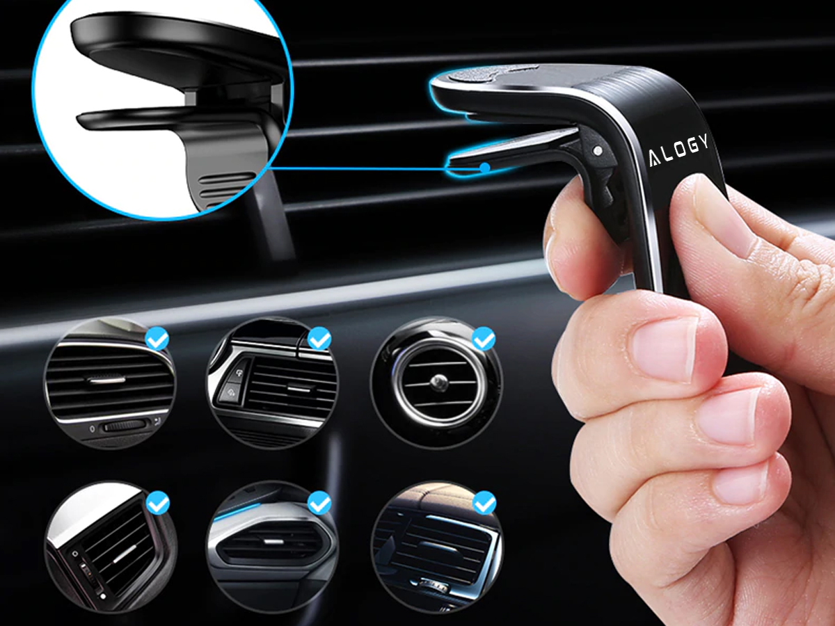 alogy grille чрезвычайно компактная, ее высота составляет всего 6 см, а ширина 3,8 см. Идеально профилированный обеспечивает идеальный вид в нашем интерьере, не занимая место и не обеспечивая идеальное крепление для смартфона. Это посвящено большинству смартфонов, доступных на рынке.