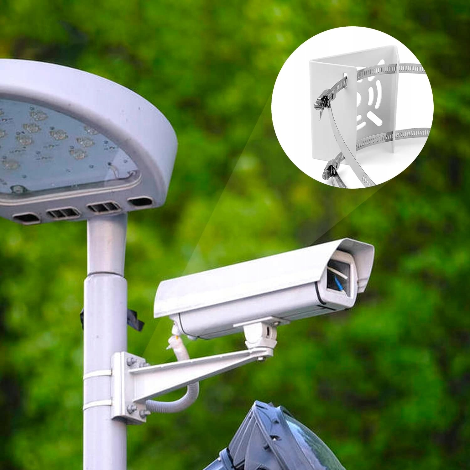 держатель палки может быть установлен на желаемый размер, откручивая винты, держатель мачты подходит для большинства камер мониторинга.