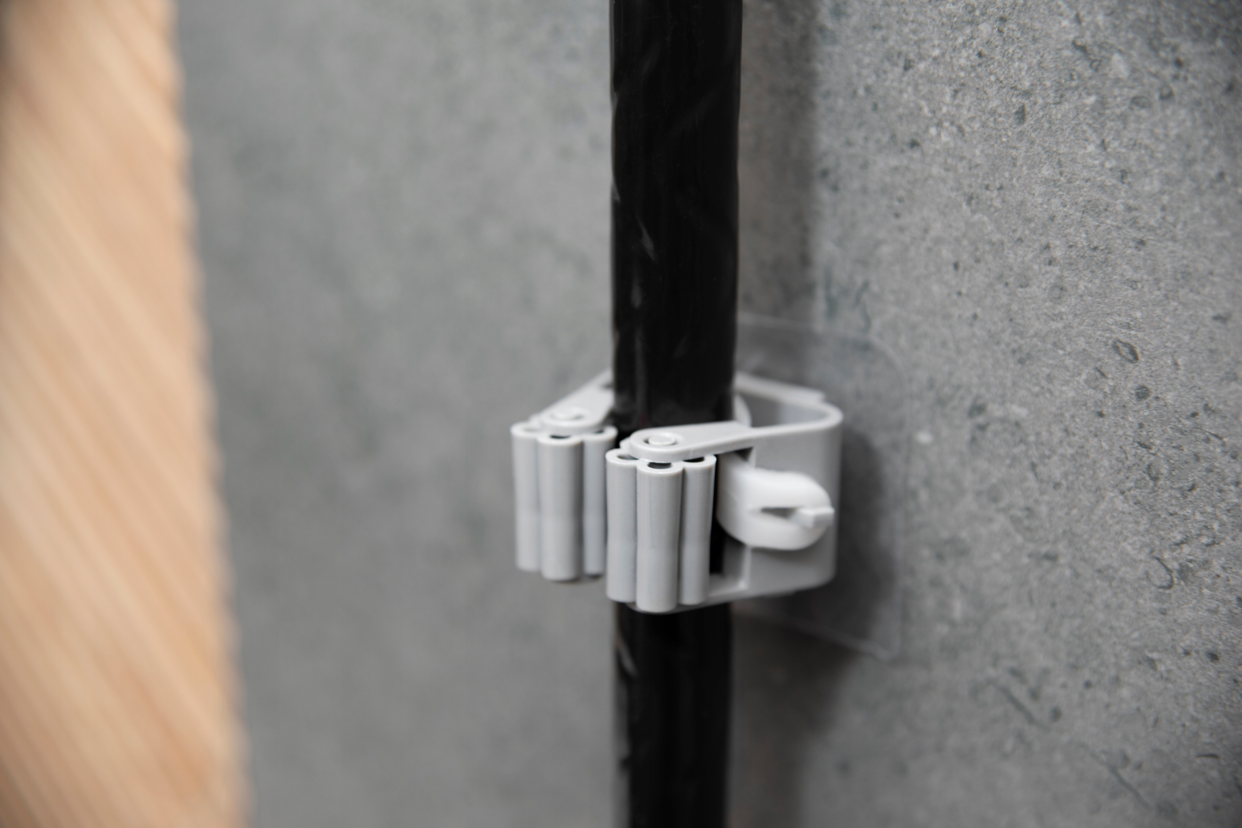 Практичный держатель для швабры из пластика и резиновой самоклеящейся накладки.