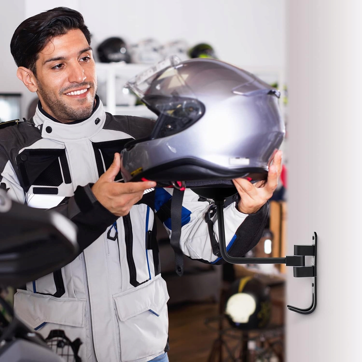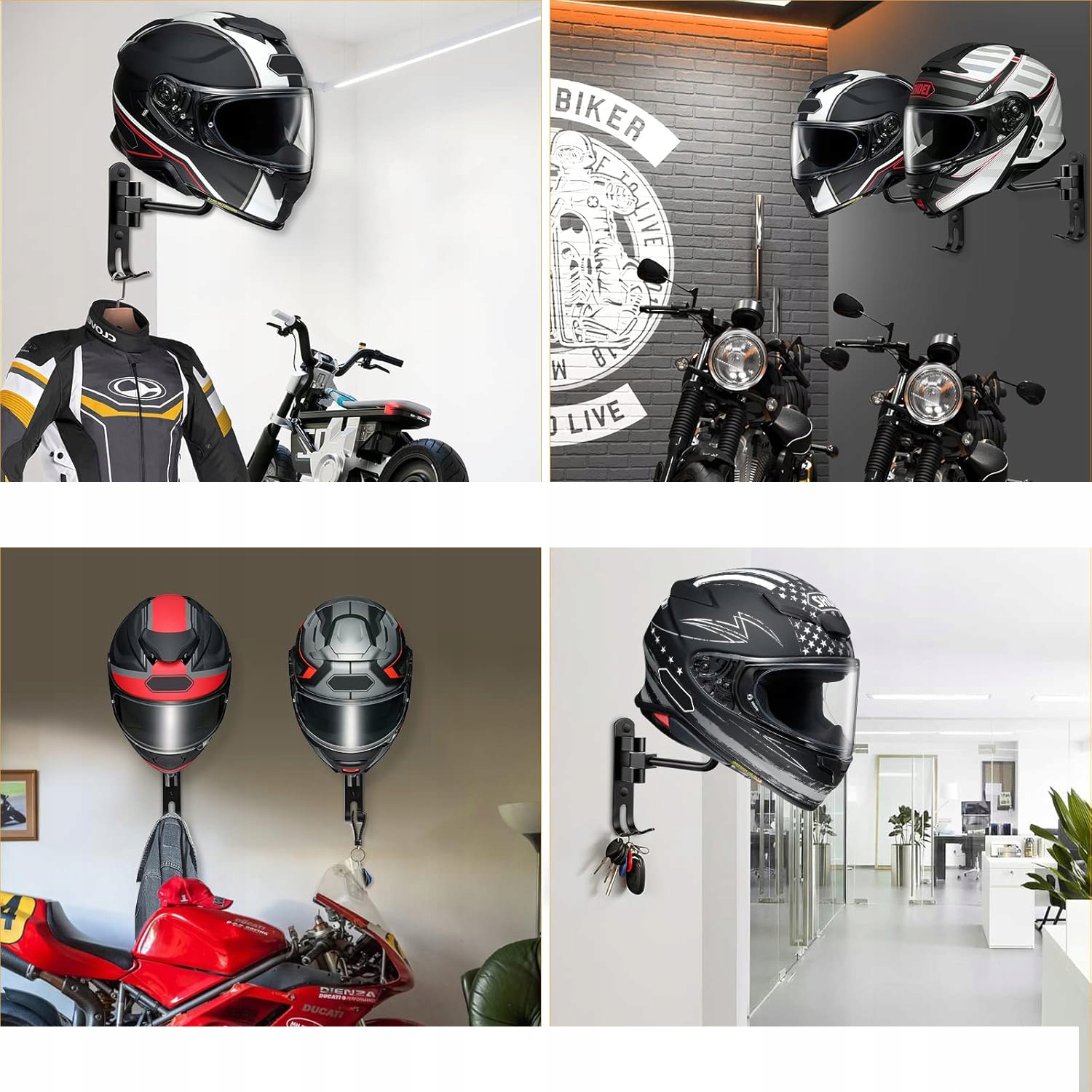 ➡️ 【Идеальные аксессуары для мотоциклов】 Держатель шлема предназначен для хранения различных головных уборов, таких как мотоциклетные шлемы, баскетбольные шлемы, защитные шлемы, шапки, пальто, куртки, ключи и т. д. Идеально подходит для дома, офиса, фермерского дома или гаража. Это улучшает использование пространства и делает его чище и опрятнее.
