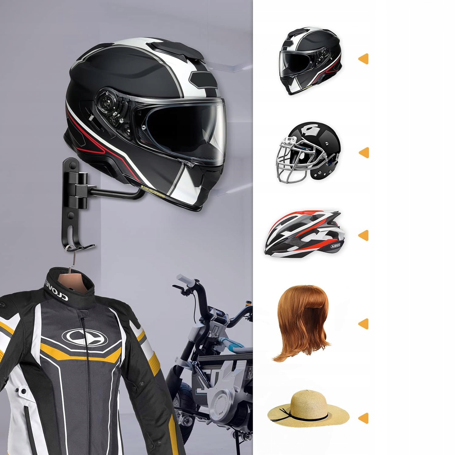НАСТЕННЫЙ ДЕРЖАТЕЛЬ ДЛЯ ШЛЕМА, ДЕРЖАТЕЛЬ ДЛЯ МОТОЦИКЛОВОГО ШЛЕМА, ДЕРЖАТЕЛЬ ДЛЯ ШЛЯПЫ И ШЛЕМА
