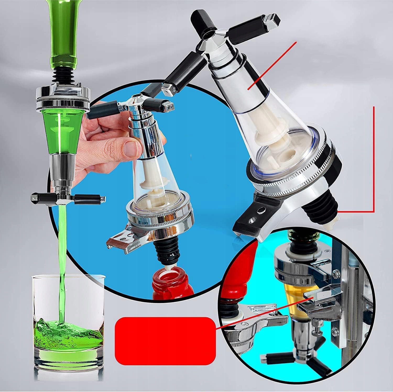 Дизайн: внешний вид инвертированного дозатора прост и красив, с двумя весенними сиденьями, классическими и практичными, практичным для смешивания напитков и избегания траты вина.