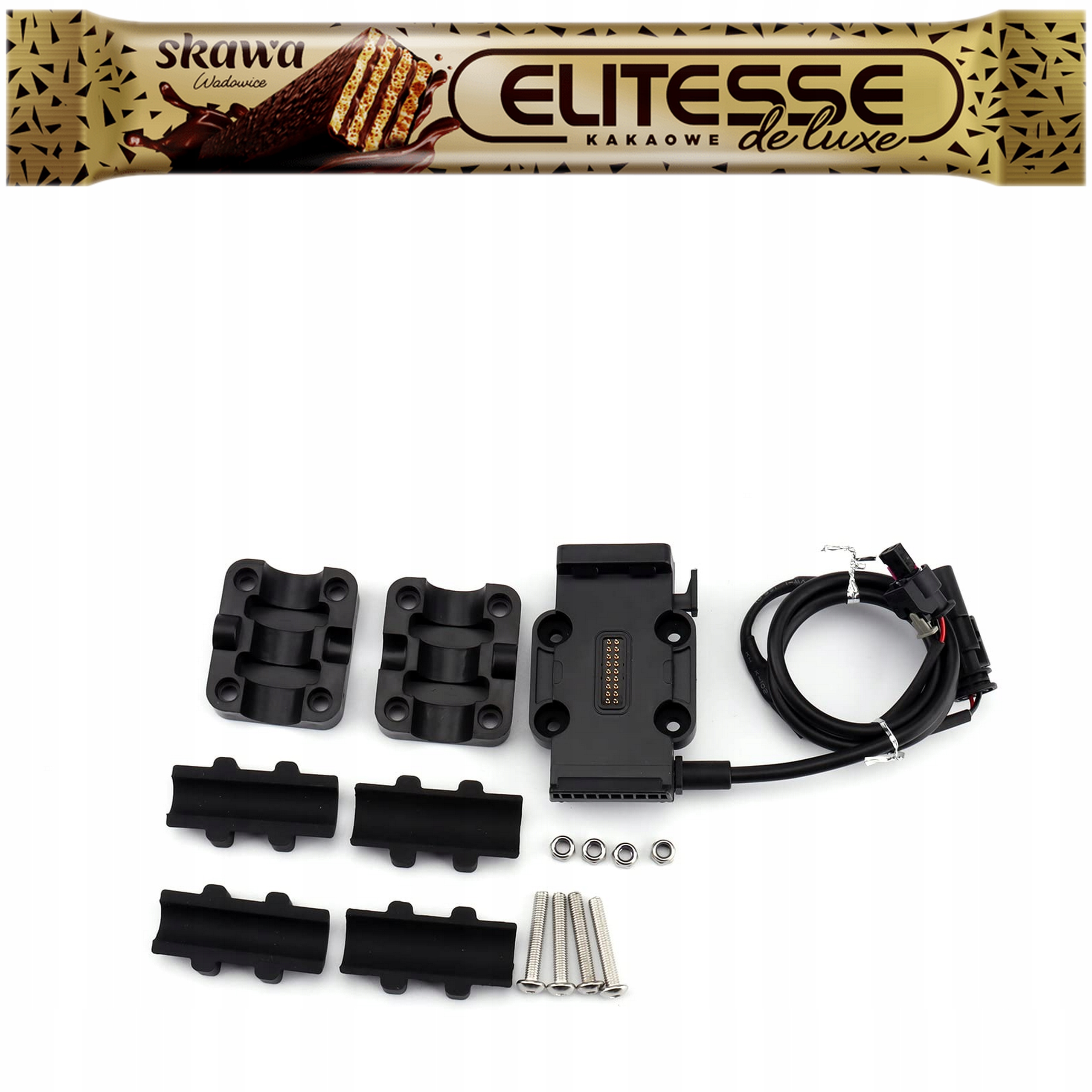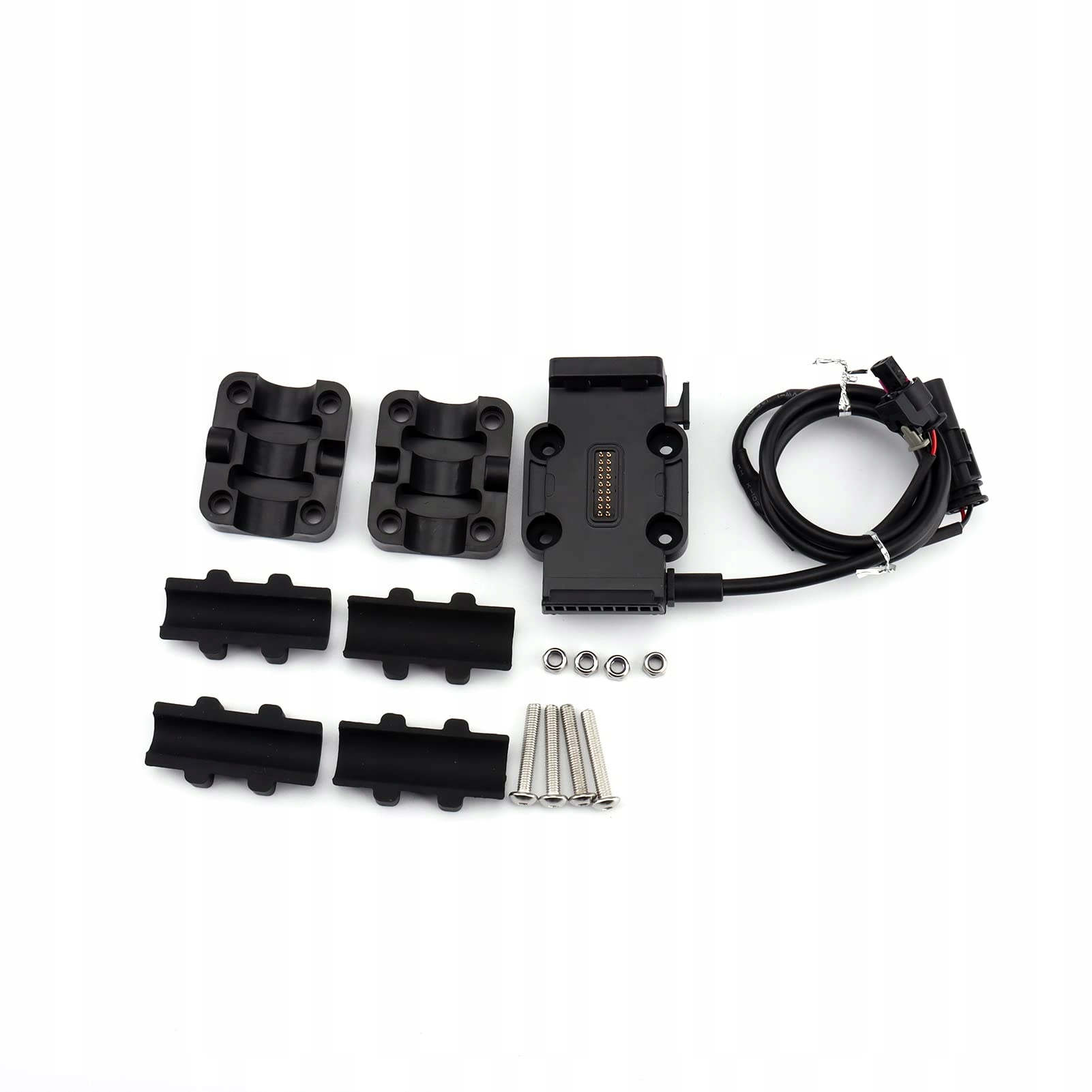 - В комплект входит крепление с силовыми кабелями и элементы крепления для руля, позволяющие установить его на мотоцикл.