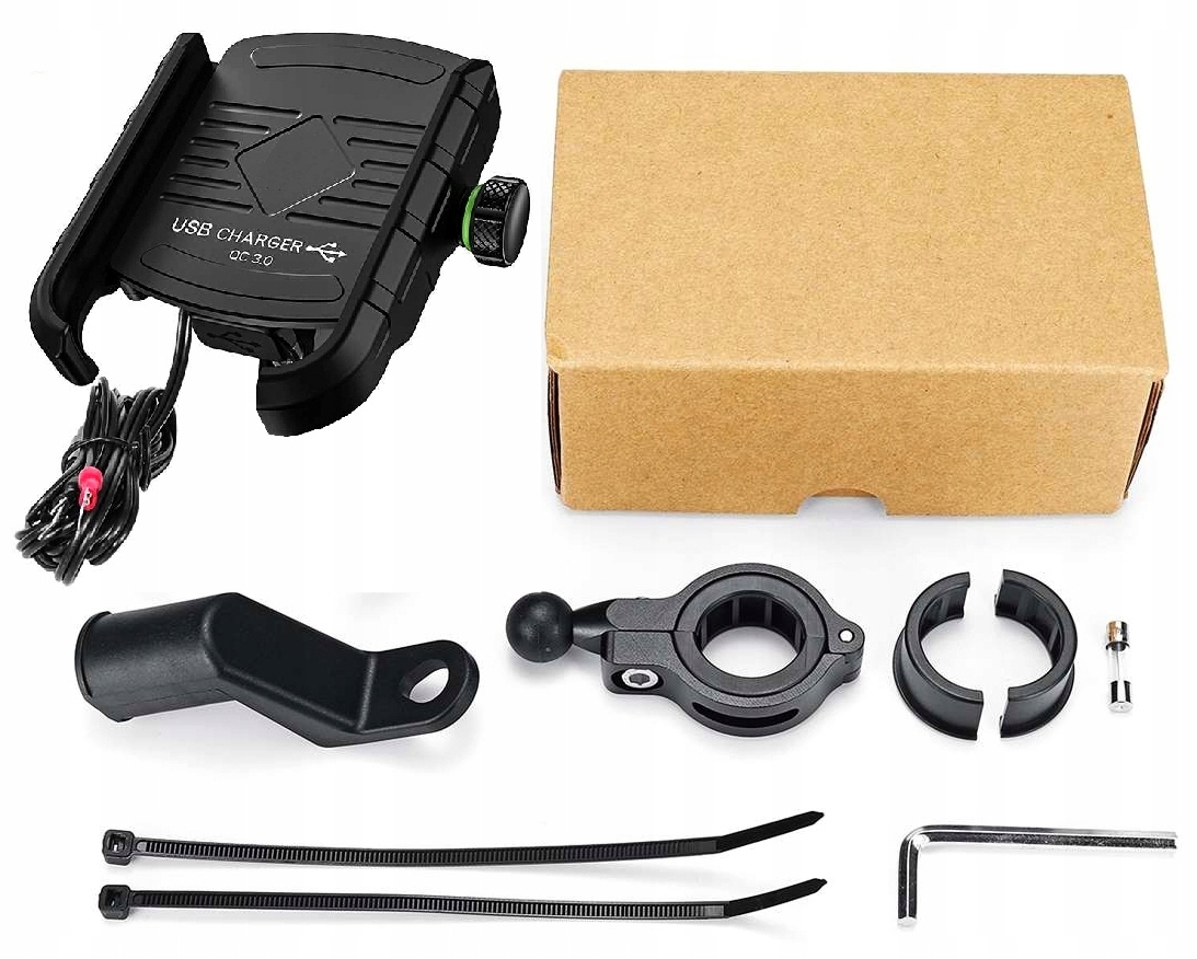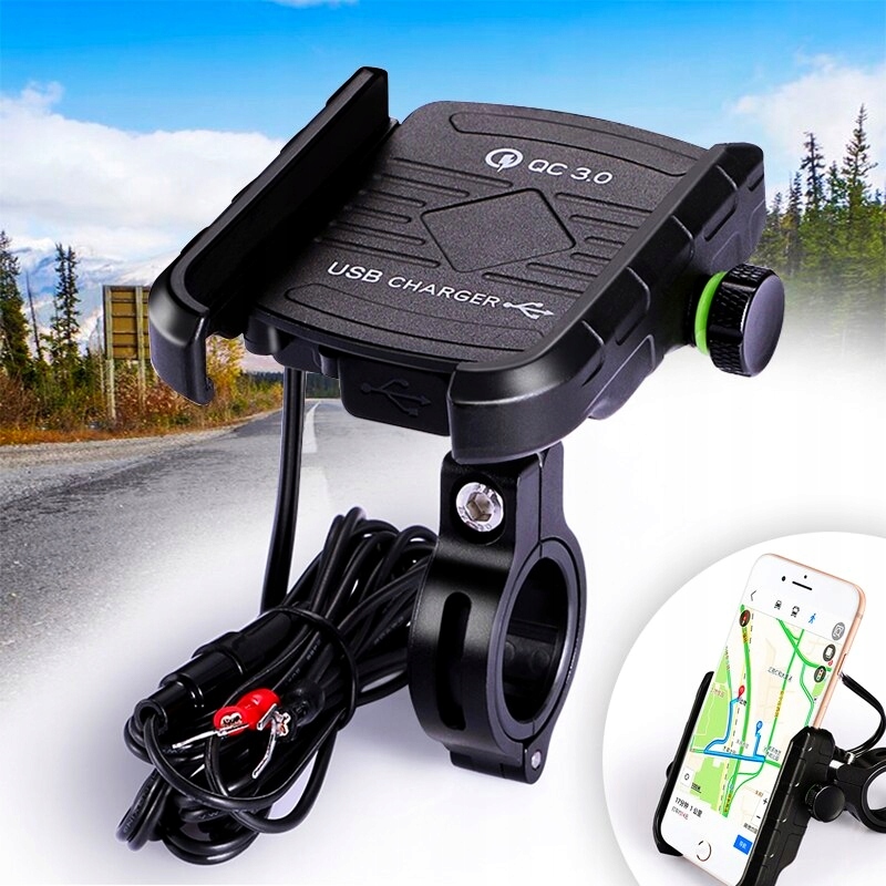 ДЕРЖАТЕЛЬ ТЕЛЕФОНА МОТОЦИКЛА USB QC 3.0 АЛЮМИНИЙ
