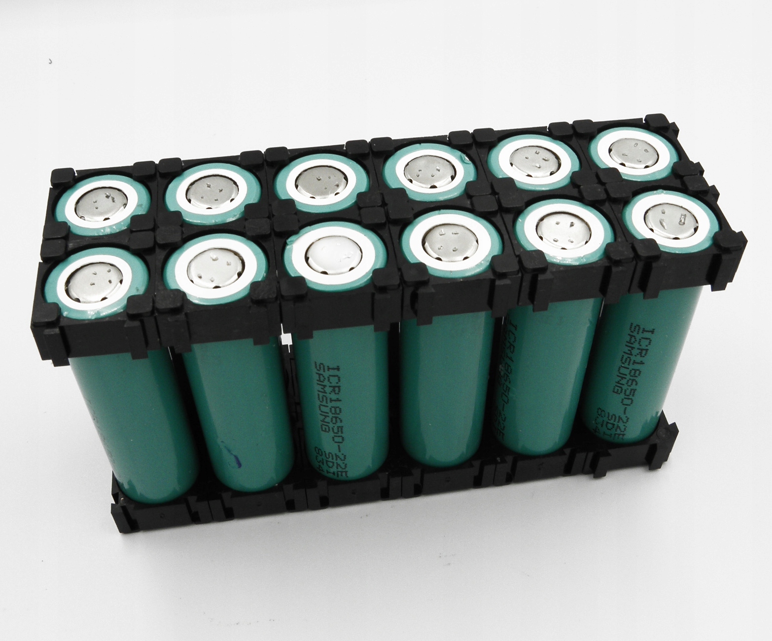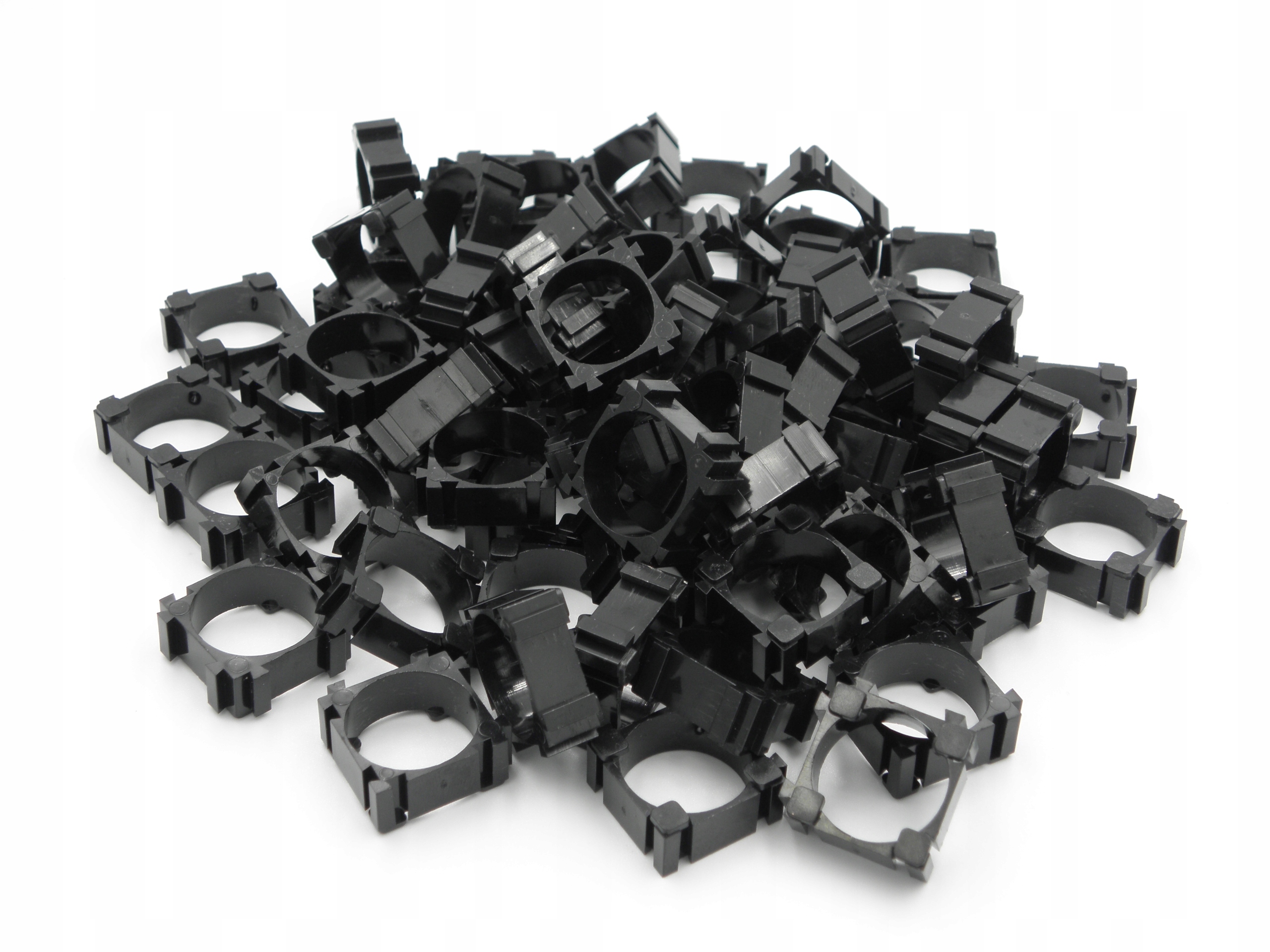 Набор из 100 штук одиночных держателей на 18650 ячеек. Держатели можно соединять между собой, что позволяет создавать упаковки с любым количеством ячеек и любой формы.