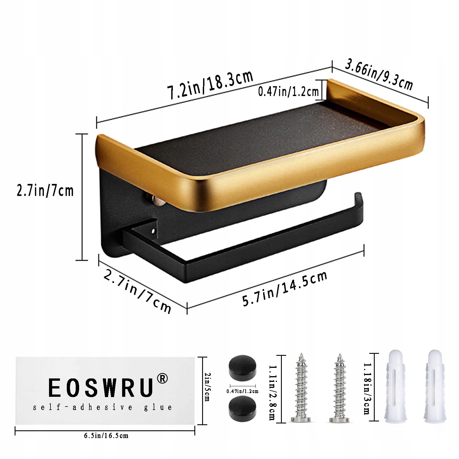 [Один держатель для двойного использования] Держатель для туалетной бумаги совмещен с держателем для туалетной бумаги и полкой для хранения, в нем можно не только хранить рулоны туалетной бумаги, но и размещать мелкие вещи, такие как ключи от мобильного телефона, часы, очки, бутылки. и т. д.