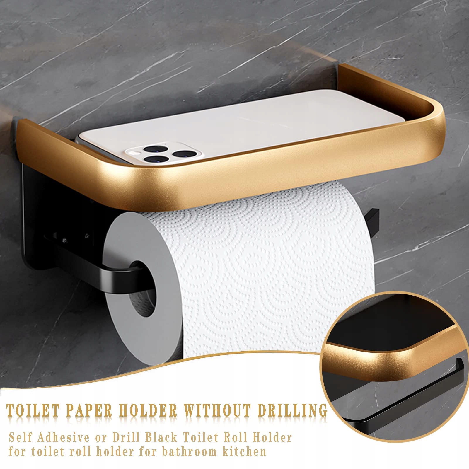 Держатель для туалетной бумаги без сверления с полкой, черный, самоклеящийся держатель для рулона туалетной бумаги, держатель для рулона туалетной бумаги Настенный держатель для туалетной бумаги для ванной, туалета, кухни, черный и золотой