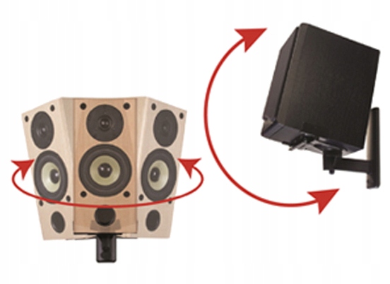 Держатель позволяет закрепить громкоговоритель с помощью ширина 135–280 мм и максимальный вес 25 кг, а система регулировки обеспечивает регулировку на 360 ° и вверх/вниз на 7 °.