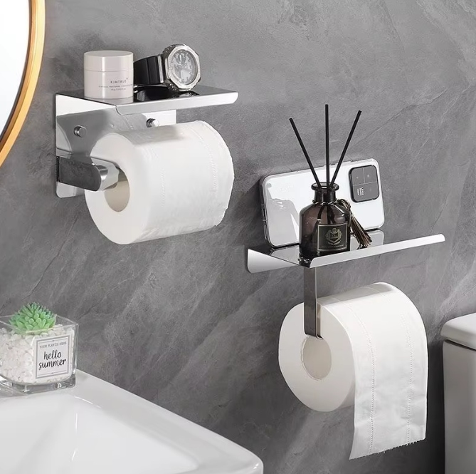 МЕТАЛЛИЧЕСКИЙ ДЕРЖАТЕЛЬ ДЛЯ ТУАЛЕТНОЙ БУМАГИ С ПОЛКОЙ ИЗ НЕРЖАВЕЮЩЕЙ СТАЛИ