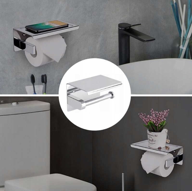 Элегантный держатель с полкой для мелких предметов, максимально увеличивающий пространство в небольших ванных комнатах. Изготовлен из прочных, устойчивых к коррозии материалов.