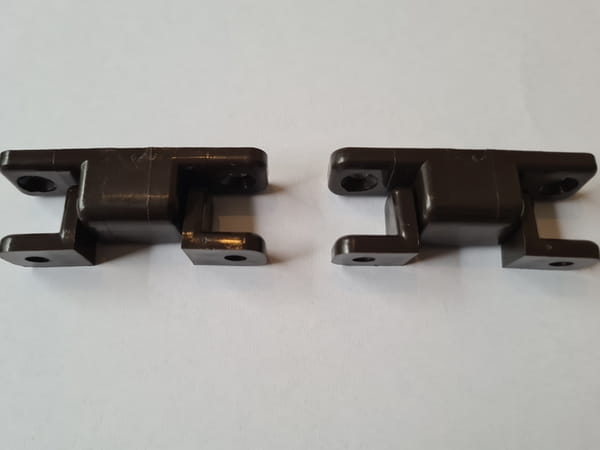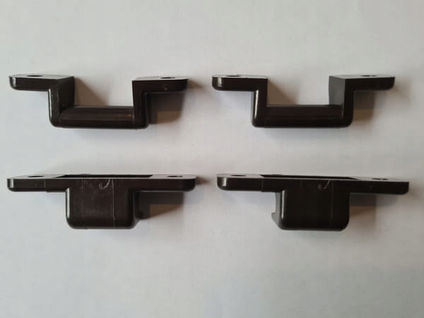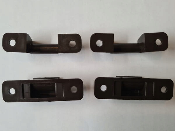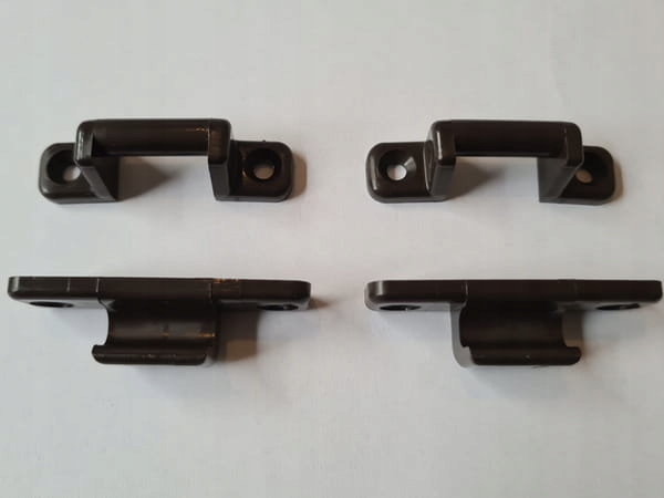 Ручки, крепящие столешницу фургона или кемпера. В комплект входят 2 шт. охватываемых элементов, крепящихся к стене, и 2 шт. охватывающих элементов, крепящихся к столешнице. Всего предложение включает в себя 4 элемента. Благодаря набору кронштейнов мы можем прикрепить столешницу к стене в фургоне или кемпере. Ручки темно-коричневые, пластиковые.