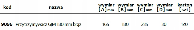 Просматривая «Держите GJM 180 мм бронза», вы можете быть уверены, что данный товар из каталога «Опоры» будет доставлен из Польши и проверен на целостность. В цене товара, указанной на сайте, учтена доставка из Польши. Внимание!!! Товары для Евросоюза, согласно законодательству стран Евросоюза, могут отличаться упаковкой или наполнением.