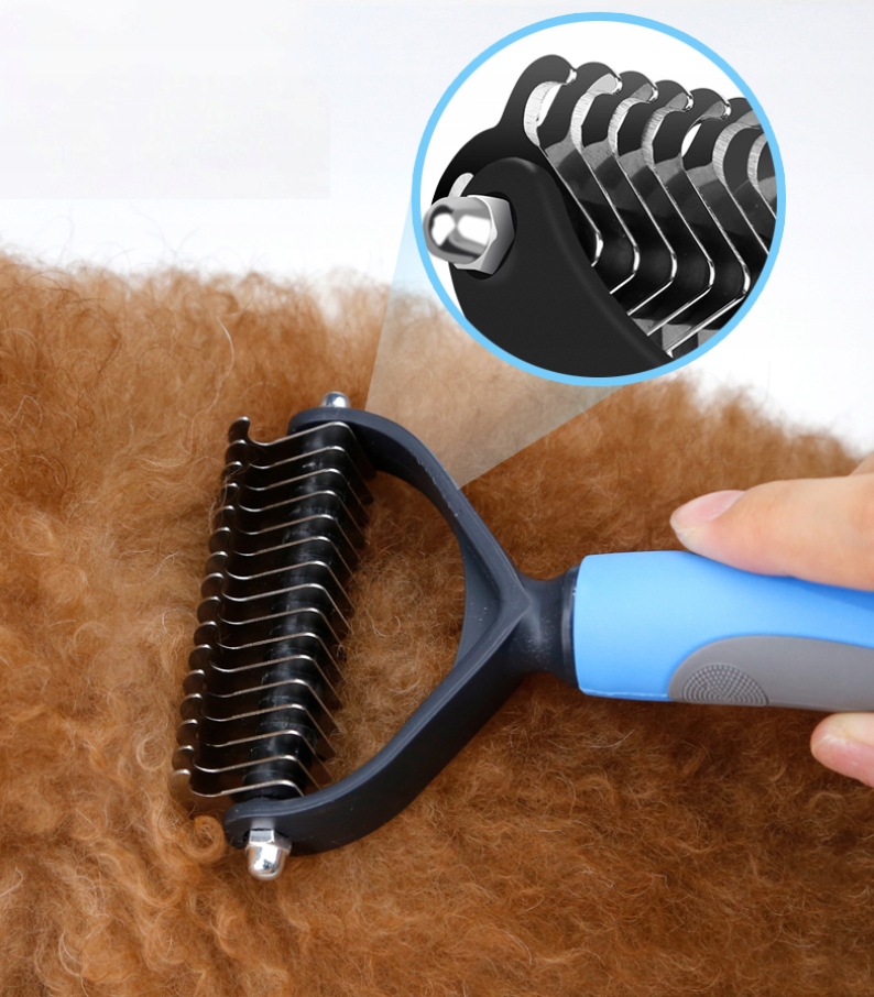 - Ремешок с изогнутым зубы — самое безопасное решение для собаки при удалении старого подшерстка и спутанной шерсти, колтунов.