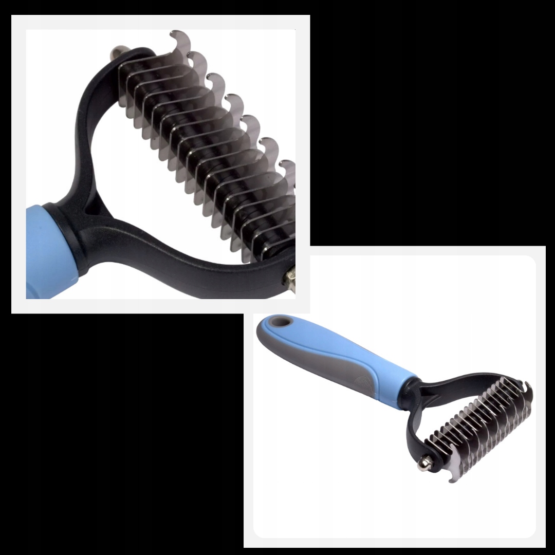 - С изогнутыми зубцами, это самое безопасное решение для собаки при удалении старого подшерстка и спутанной шерсти
