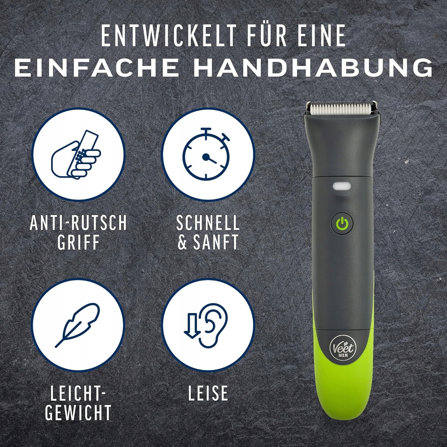Благодаря этому вы можете наслаждаться точной и деликатной депиляцией для кожи - без компромисса в сфере производительности. Благодаря исключительно широкой головке триммера интимную бритву и интимное тело VEET обеспечивает быстрое и даже удаление волос, даже в случае сильных волос. Независимо от того, хотите ли вы сократить, формировать или разрезать более крупные поверхности - эффективные лезвия и различные расчесывания позволяют индивидуально соответствовать вашим потребностям и желаемой длине волос. Таким образом, вы получите хороший эффект в соответствии с вашими пожеланиями. Благодаря вашему 100% водонепроницаемому триммеру для волос вы можете легко использовать в душе. Несоотражное покрытие обеспечивает безопасную работу, в то время как эффективная зарядная батарея USB позволяет использовать беспроводной до 60 минут. Независимо от того, есть ли дома или путешествовать - интимный триммер - эффективное удаление волос вокруг интимных и чувствительных зон тела. Интимный триммер Veet был специально разработан для безопасного и тщательного удаления волос из чувствительных мест на теле, таких как интимная зона, грудь, лицо и подмышки.