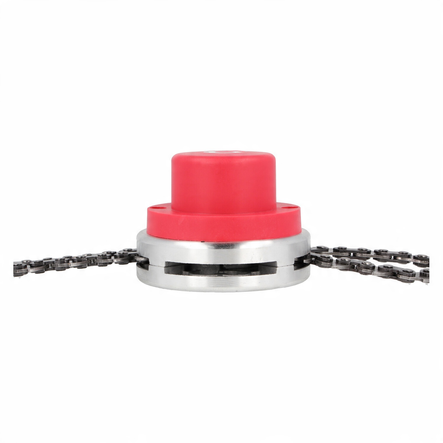 * Головки с цепью более эффективны при стрижке толстых и твердых растений, таких как: трава, кусты, деревья b>