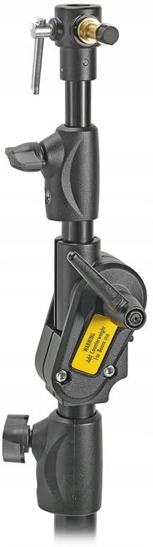 Manfrotto 420B — это осветительная стойка с возможностью работы в качестве стрелы. Центральная колонна ломается на определенной высоте, что после разблокировки рычага позволяет выдвинуть установленный светильник за вертикальную ось штатива. Длина руки 191 см. Рекомендуется, чтобы рычаг был как можно короче для безопасности подсоединенного оборудования. На другом конце кронштейна также необходимо повесить противовес, чтобы сбалансировать центр тяжести штатива. В эту версию штатива входит противовес. Это так называемый мешок с песком весом около 6 кг, чего в большинстве случаев достаточно, чтобы сбалансировать вес лампы.